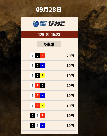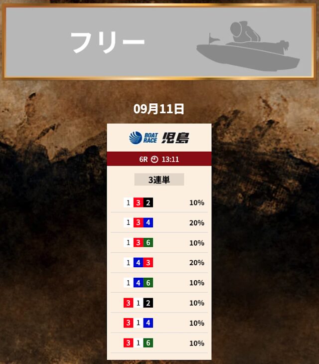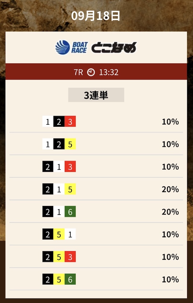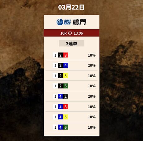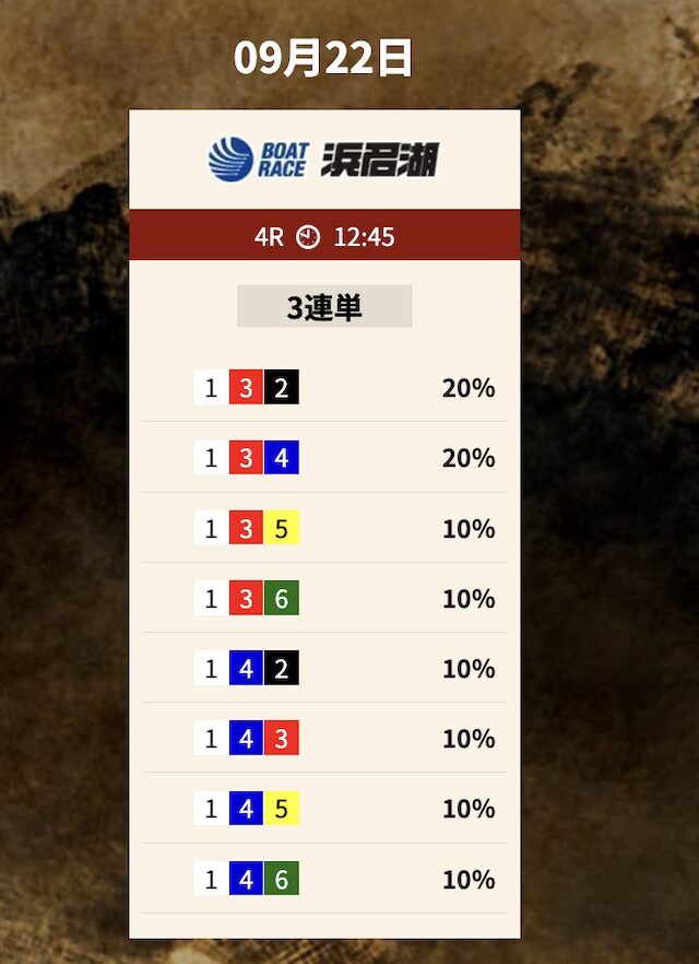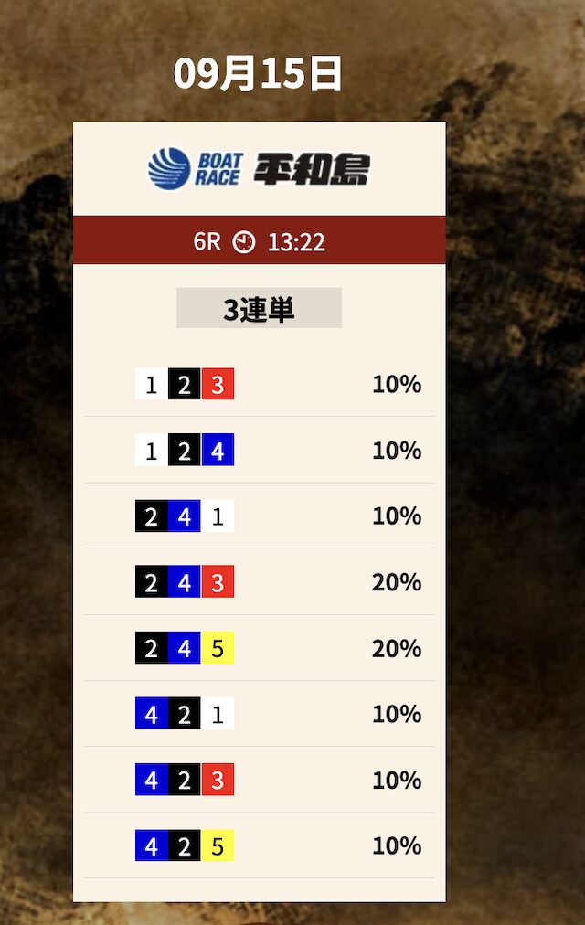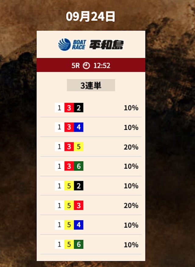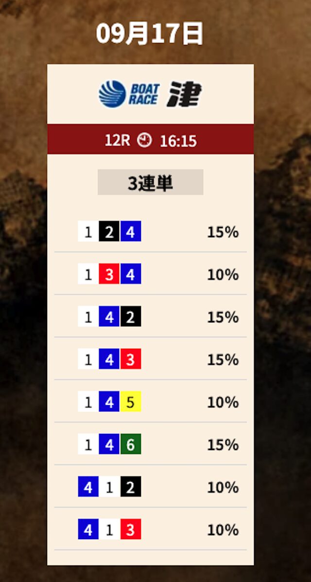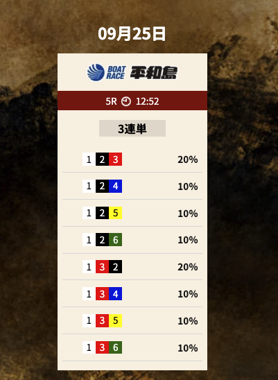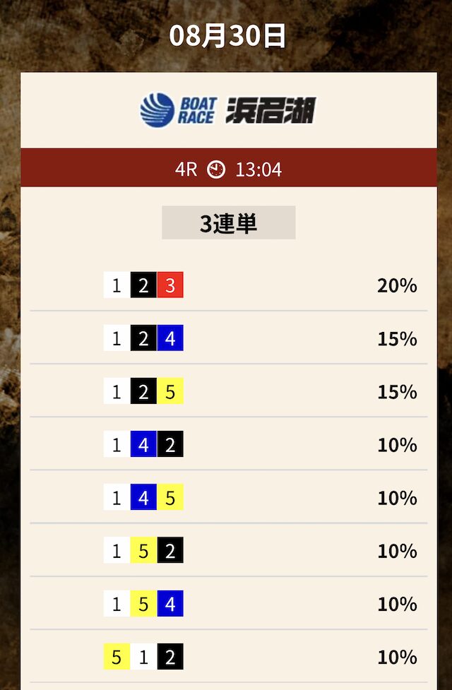 では、競艇トレジャーハンターの予想を見てみましょう。