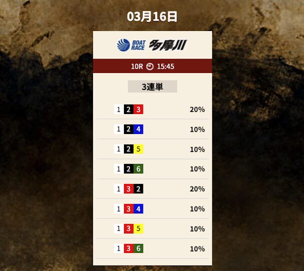 多摩川という水面特性を踏まえ、競艇トレジャーハンターは選手の実力よりもインコースの有利さを重視した判断を下したようです。