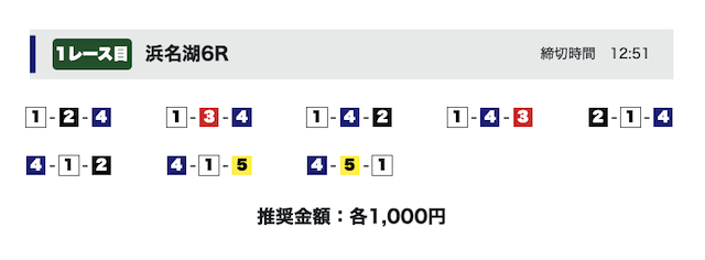 また、3・4・5号艇を頭にした買い目も、それぞれ1点ずつ予想。