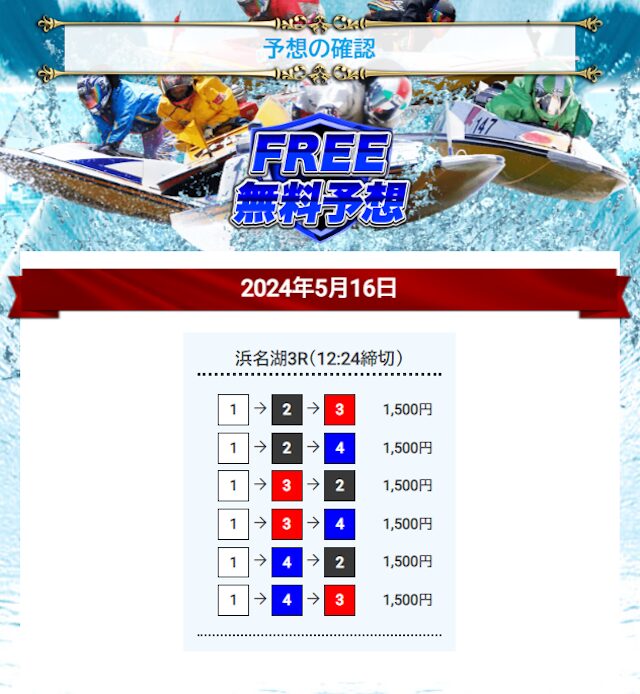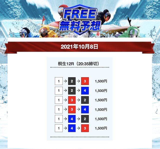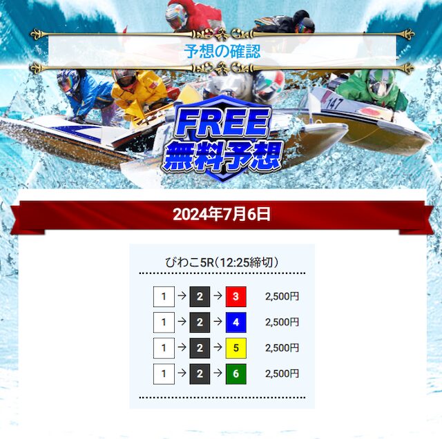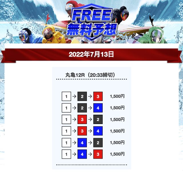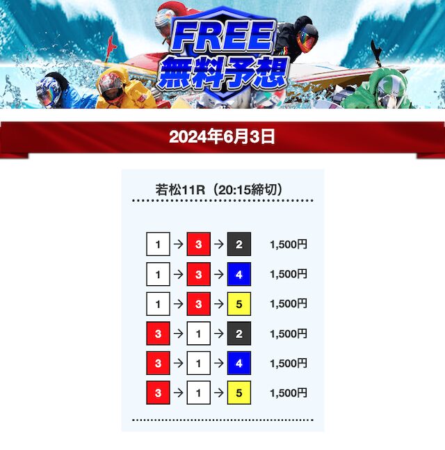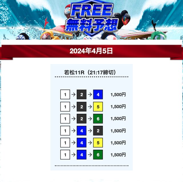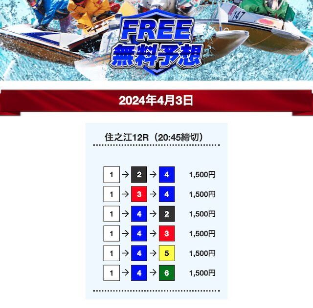 ということで、ボートワンの最新の無料予想から検証をスタートします。