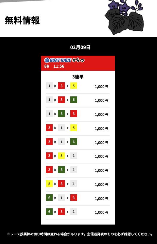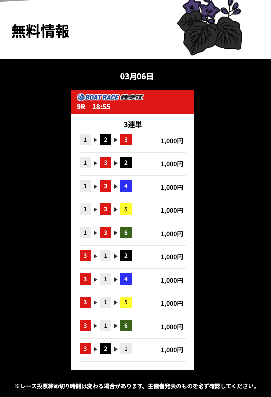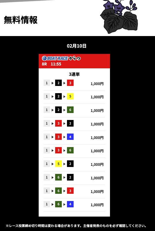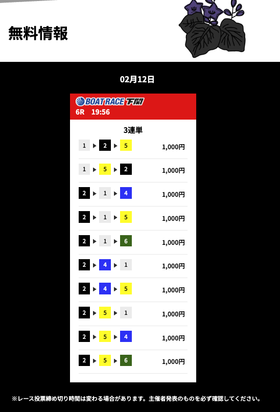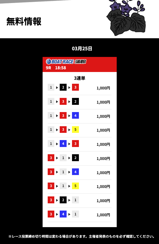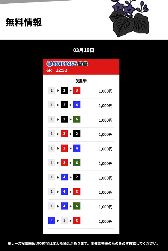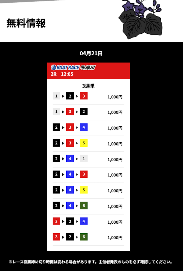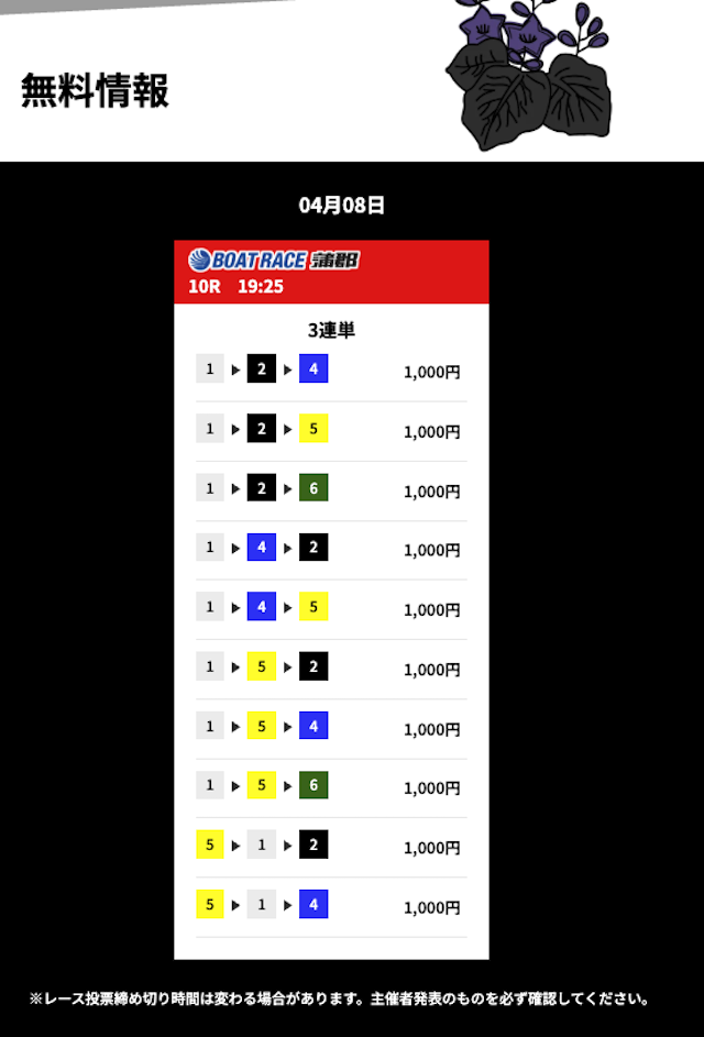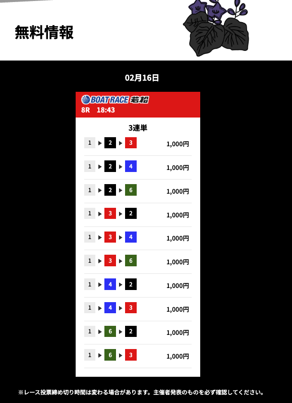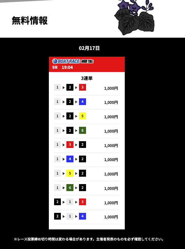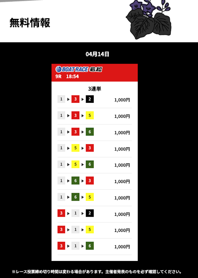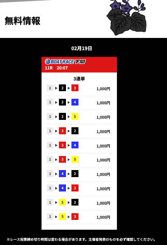 花舟の無料予想の検証結果からご覧ください。