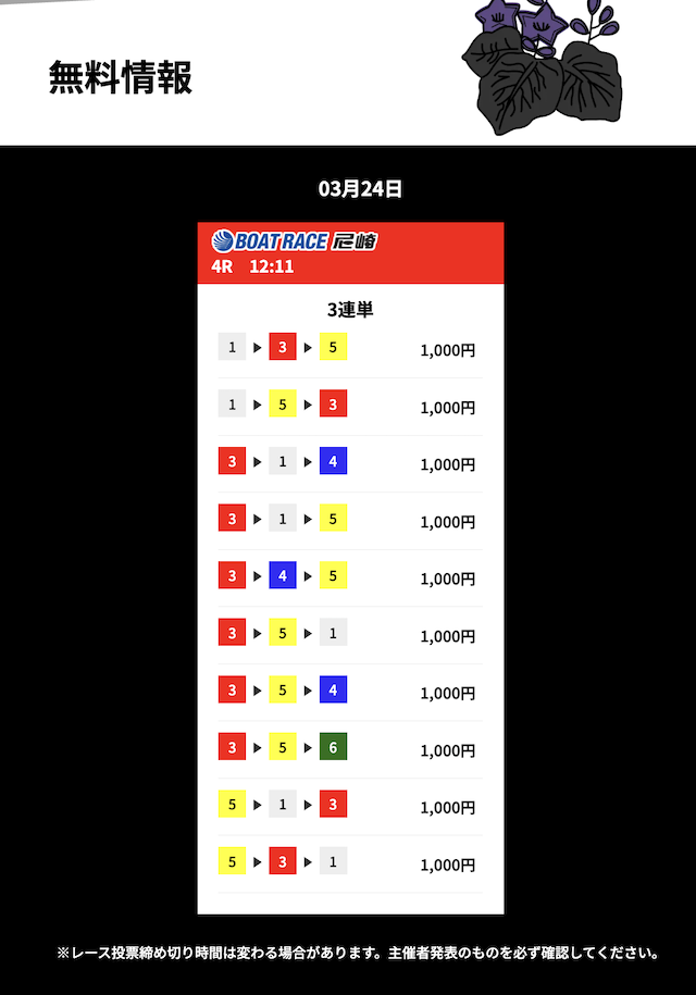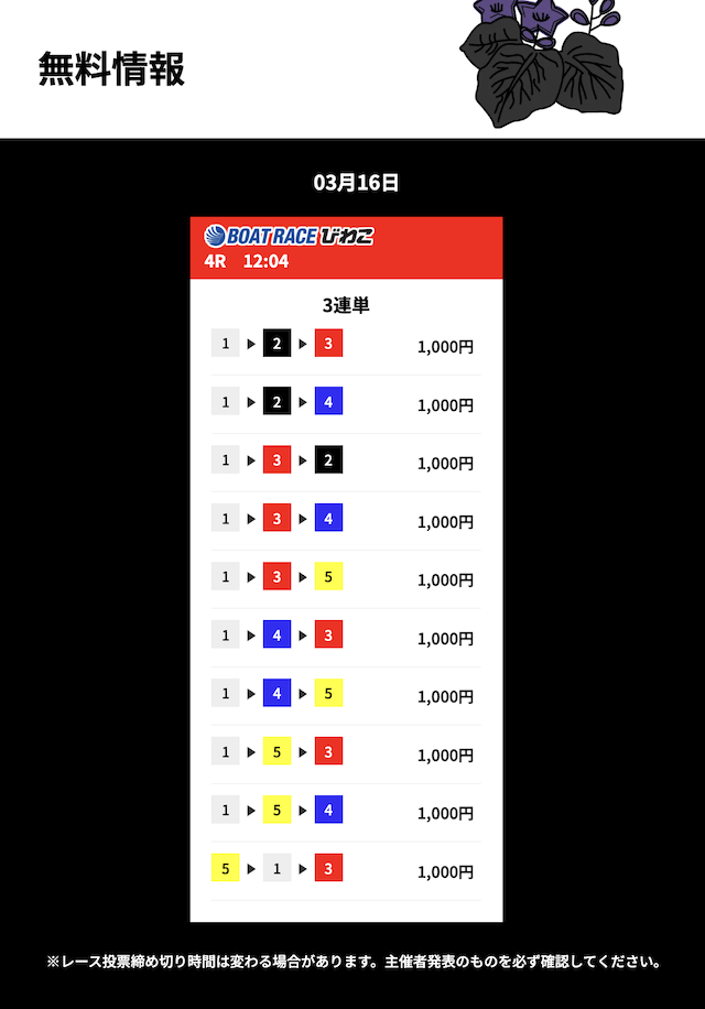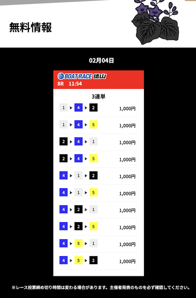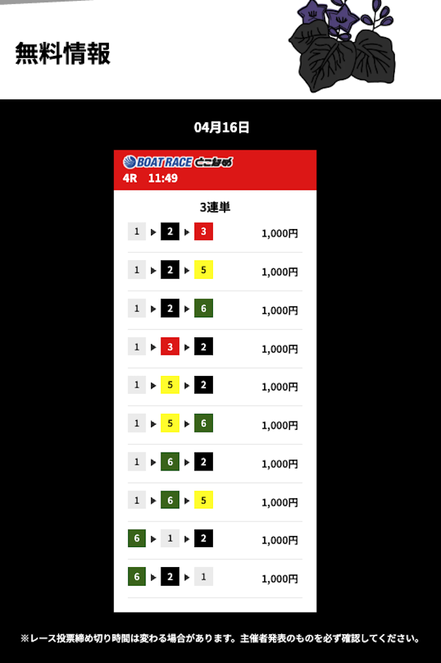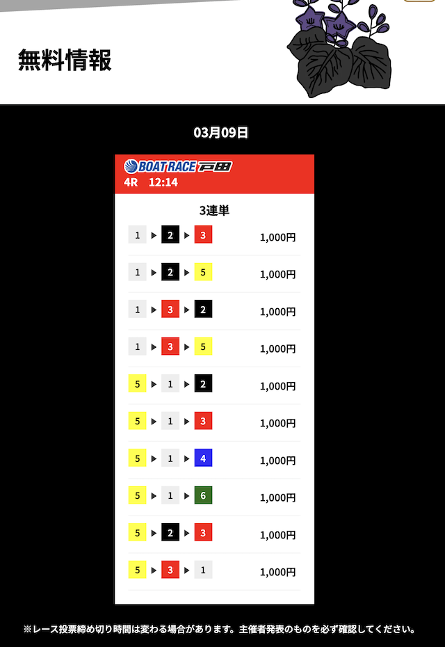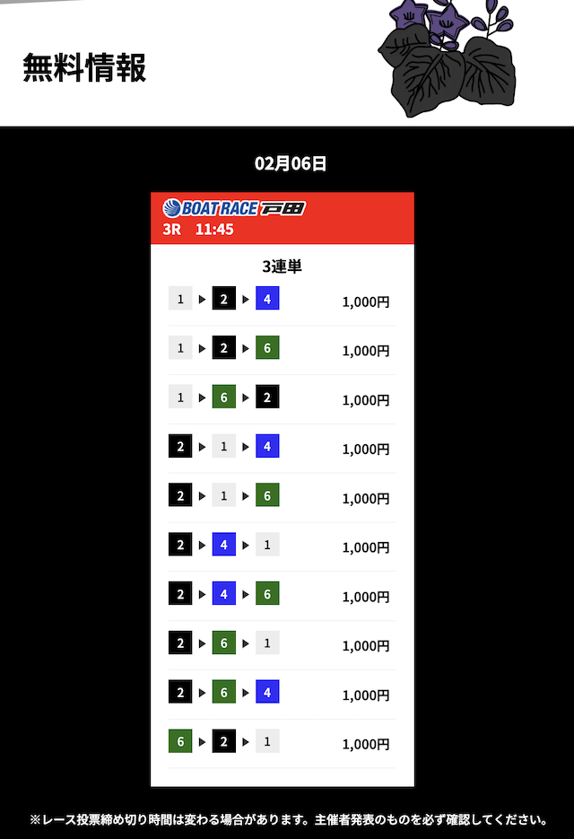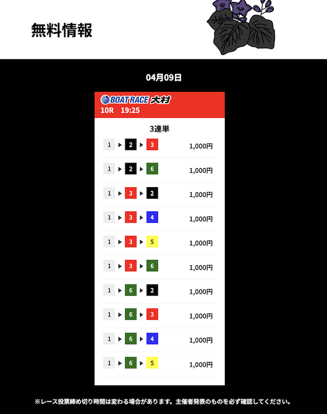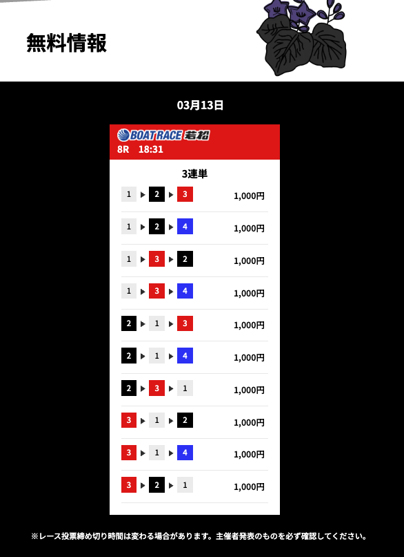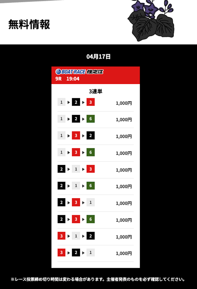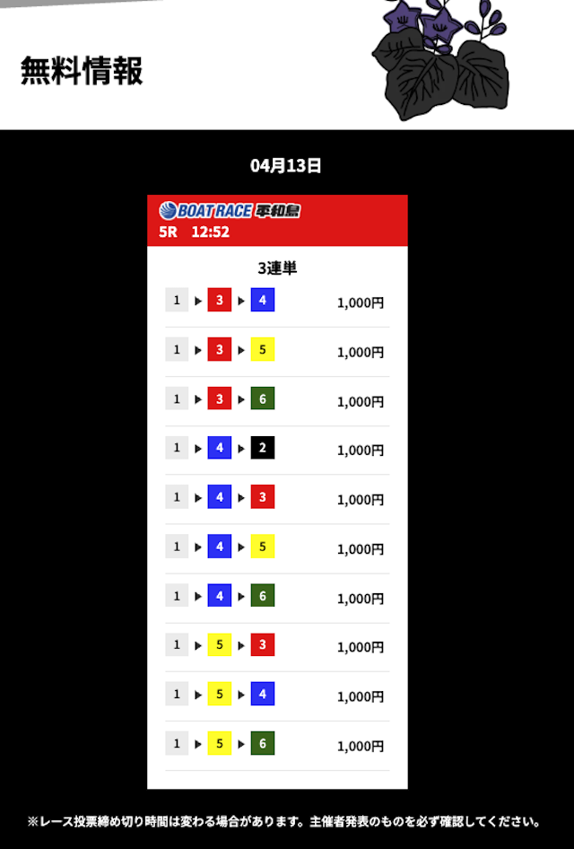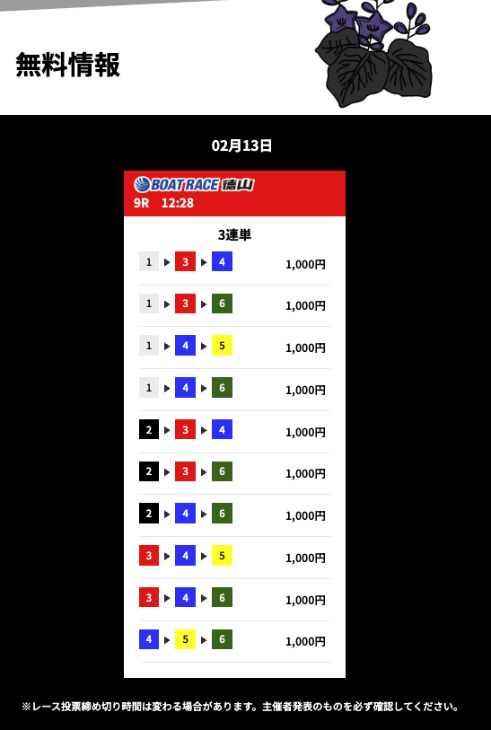 花舟の無料予想の検証結果からご覧ください。