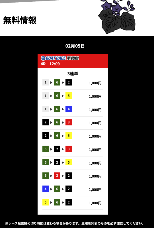 花舟の有料予想「蝶」の最新の結果を共有します。