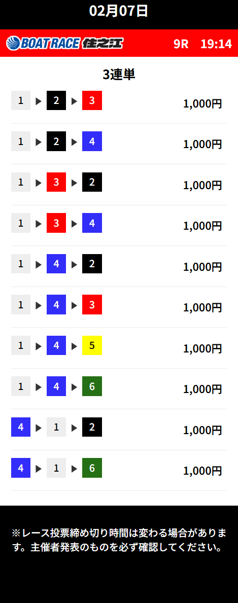| 26年3月6日 | 住之江9R | 三連単 | 10点 | 14,200円 |