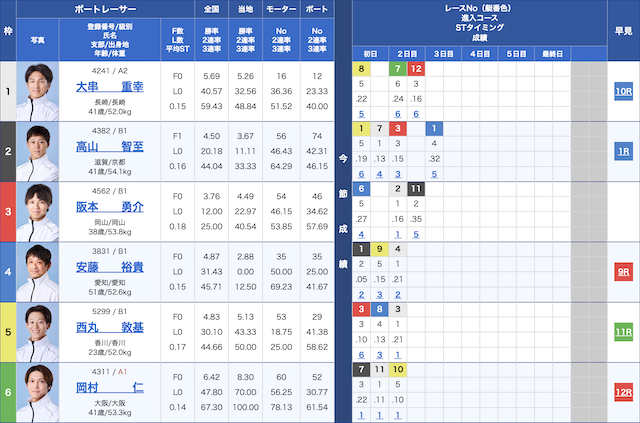 | 6号艇 | ◎ | ◯ | ◎ | ◎ |