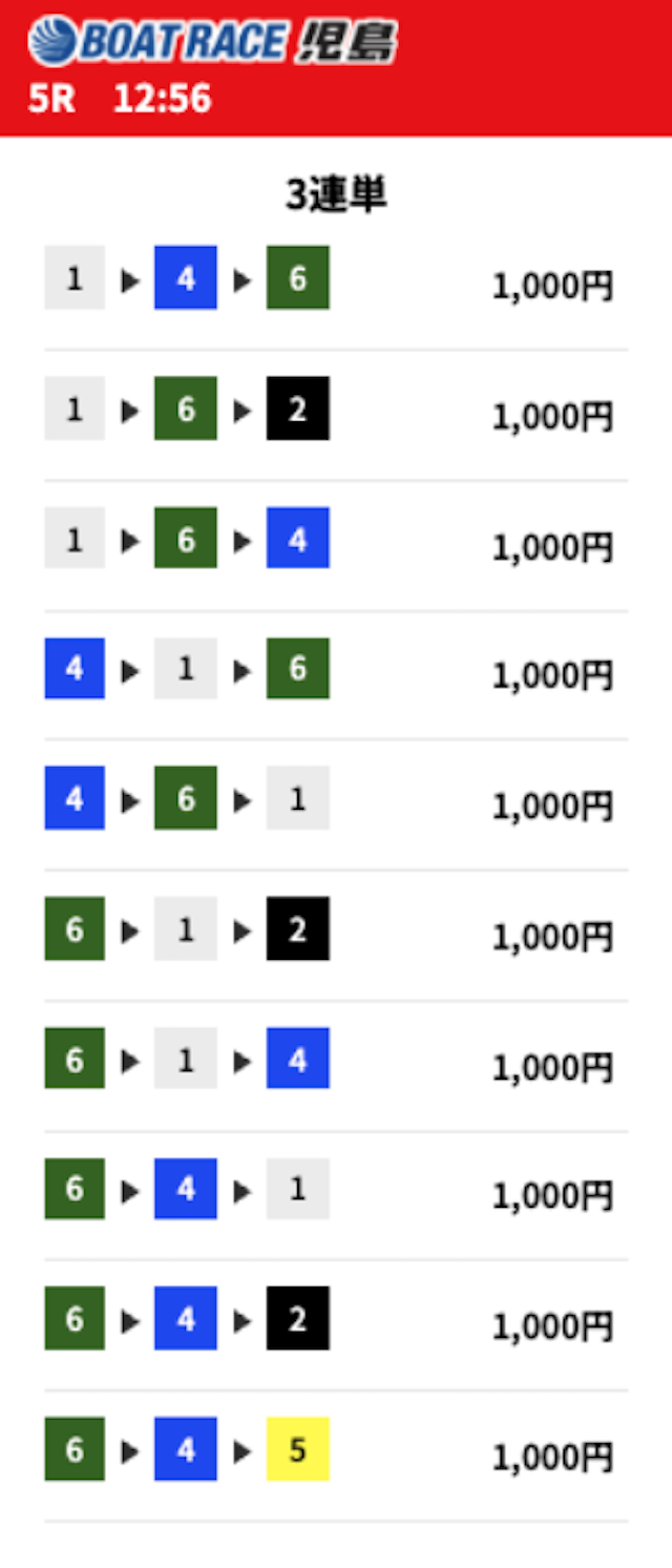 | 1月6日 | 若松9R | 三連単 | 10点 | 12,300円 |