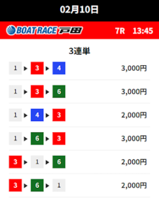 | 1月13日 | 戸田4R | 三連単 | 10点 | 83,200円 |