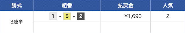 5号艇の躍進があったにも関わらず、2号艇が連帯を守る展開を読み当てました。