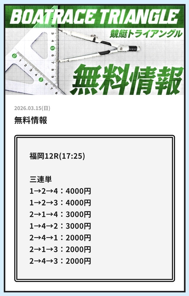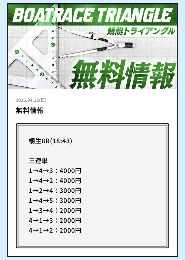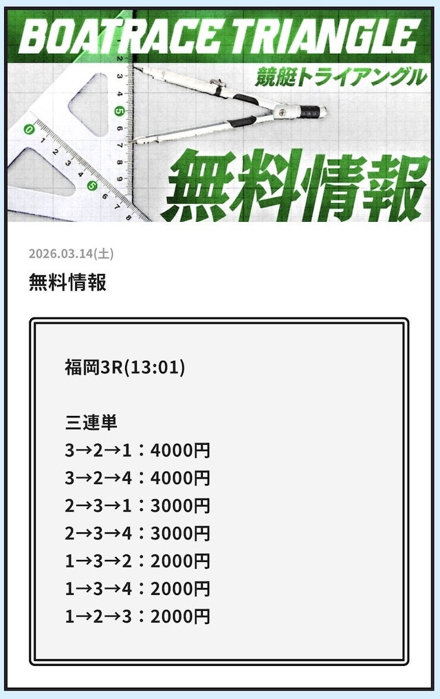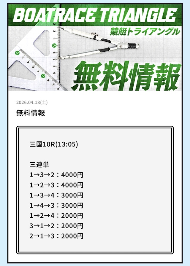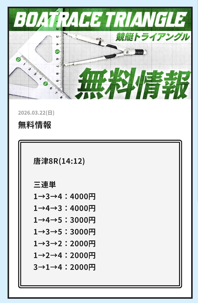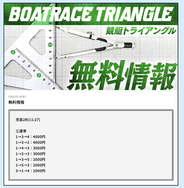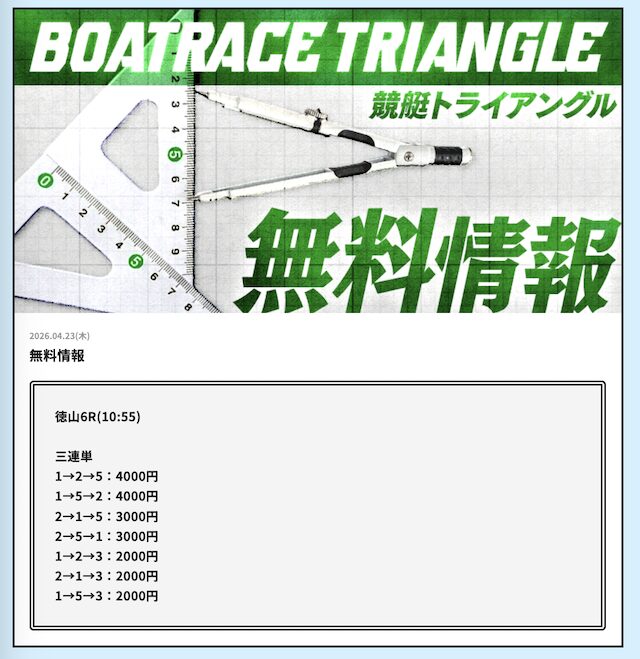 競艇トライアングルの無料予想│参加した成績データをすべて公開