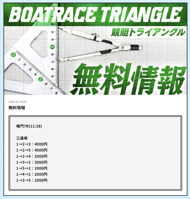 競艇トライアングルは1号艇軸・鉄板レース狙いのサイトです。