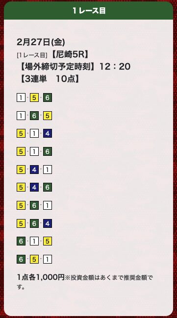 | 26年2月27日 | 尼崎5R | 三連単 | 10点 | 18,300円 |