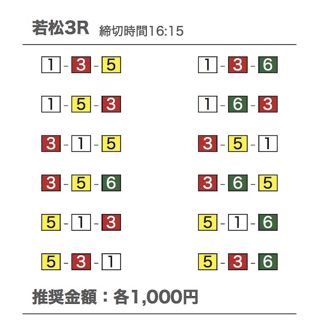 8月11日 | 若松3R | 三連単 | 12点 | 31,000円 |