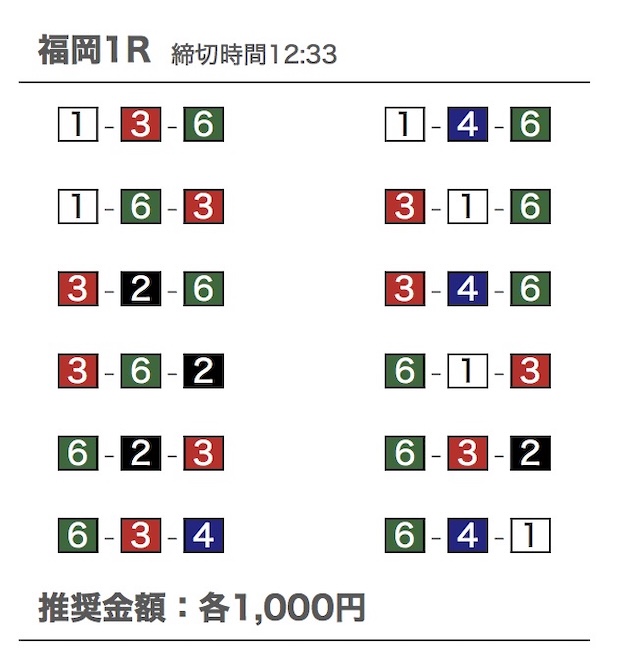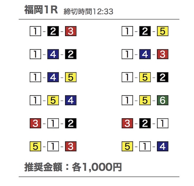 8月21日 | 福岡1R | 三連単 | 12点 | 0円 |