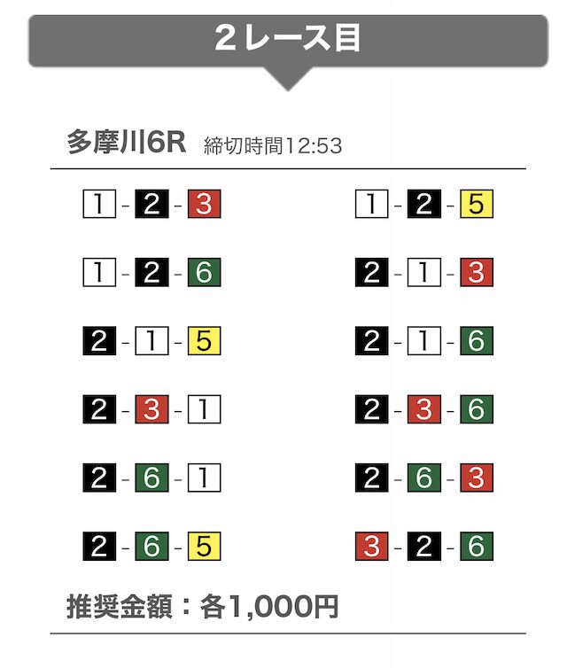 | 10月10日 | 多摩川7R | 三連単 | 12点 | 21,300円 |