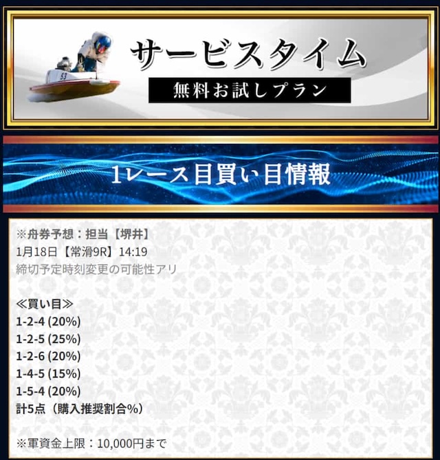 ただし、いきなり有料から始めるのはリスクが高いので、まずは無料予想で競艇セントラルの実力を確認することをおすすめします。