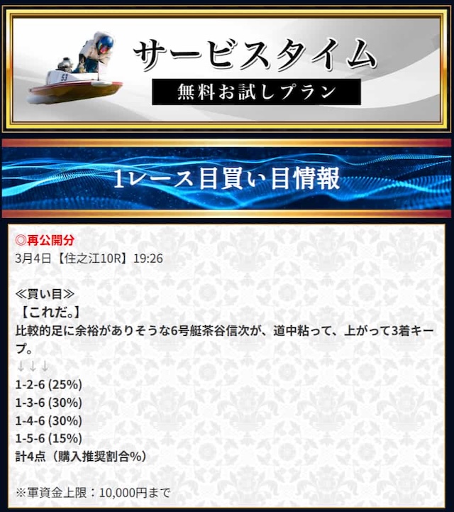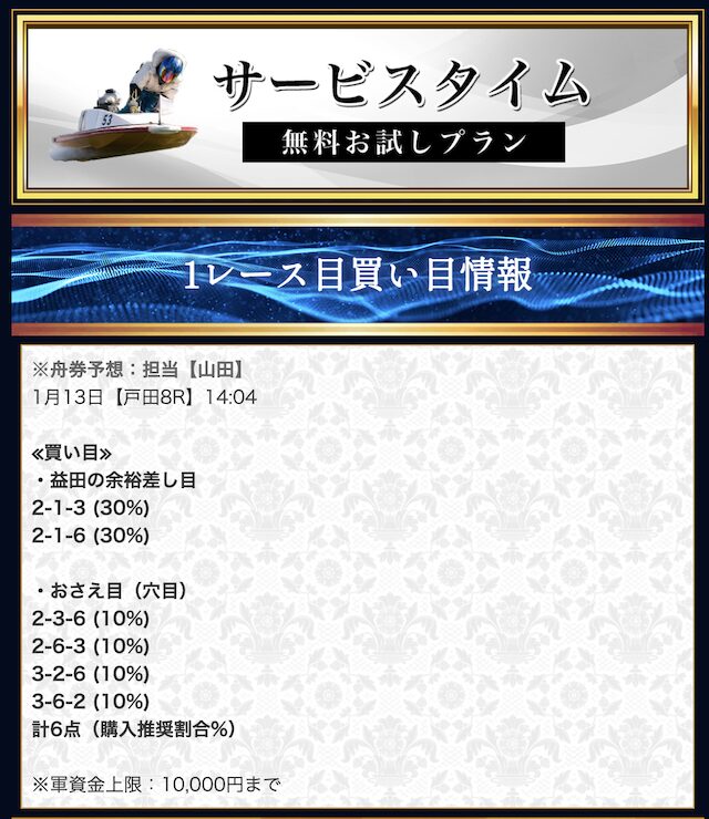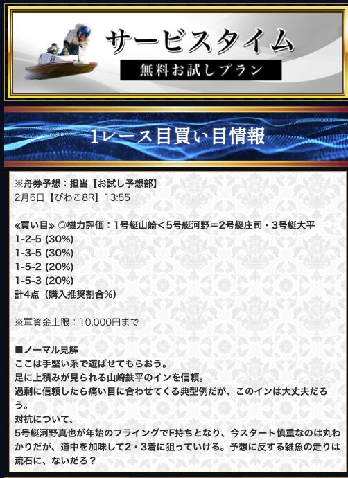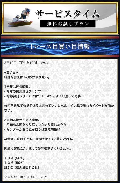無料予想で平均4万円の払戻実績があることを考えれば、段階的に資金を作ってから有料に挑戦するという戦略が最も現実的。