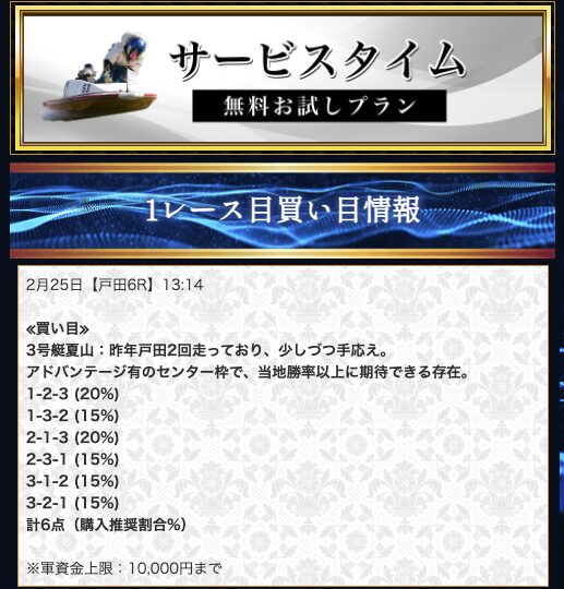 無料予想はあくまでお試し。