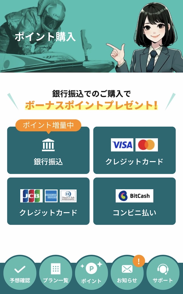 有料予想へ参加する場合は、ポイントの購入が必要になります。