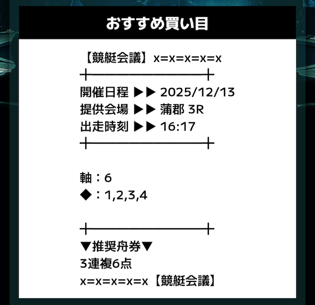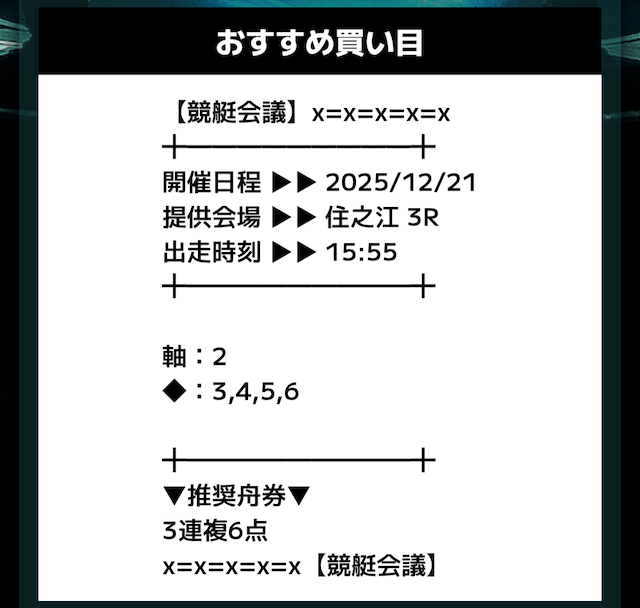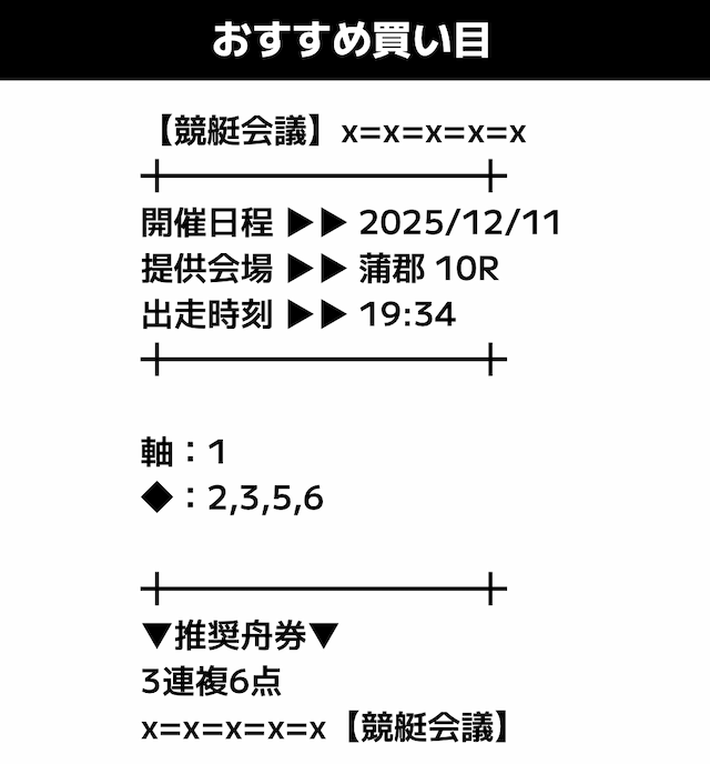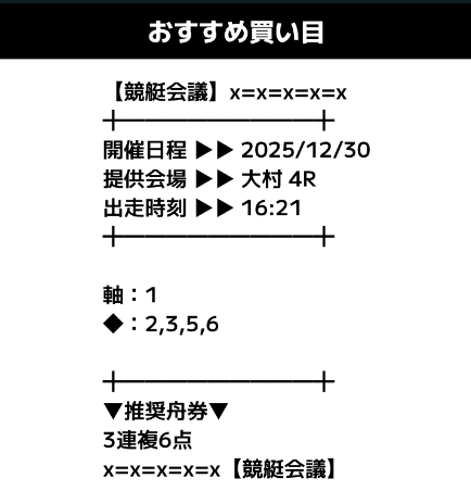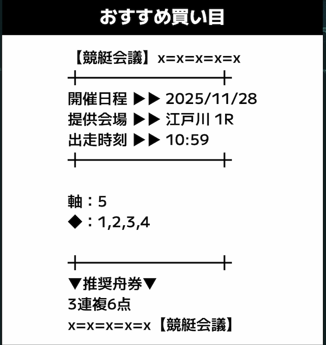 では、競艇会議が導き出した予想を見ていきます。