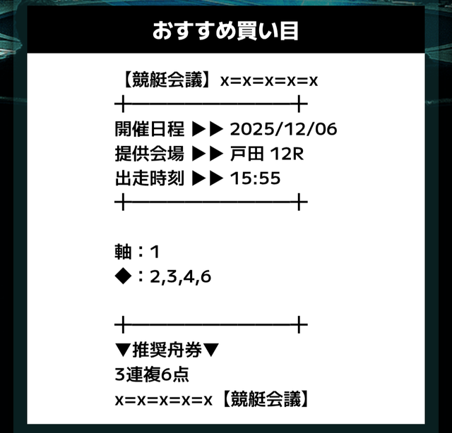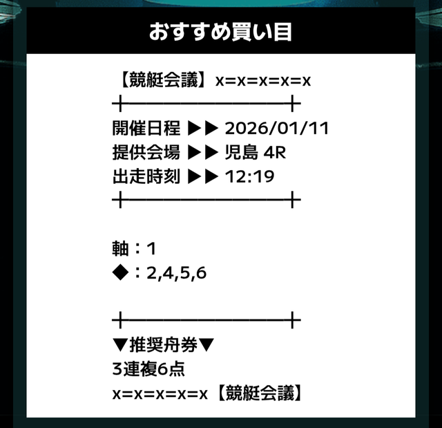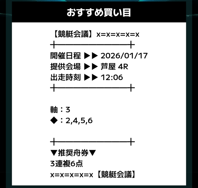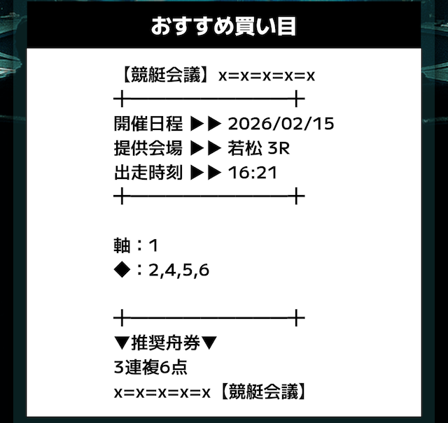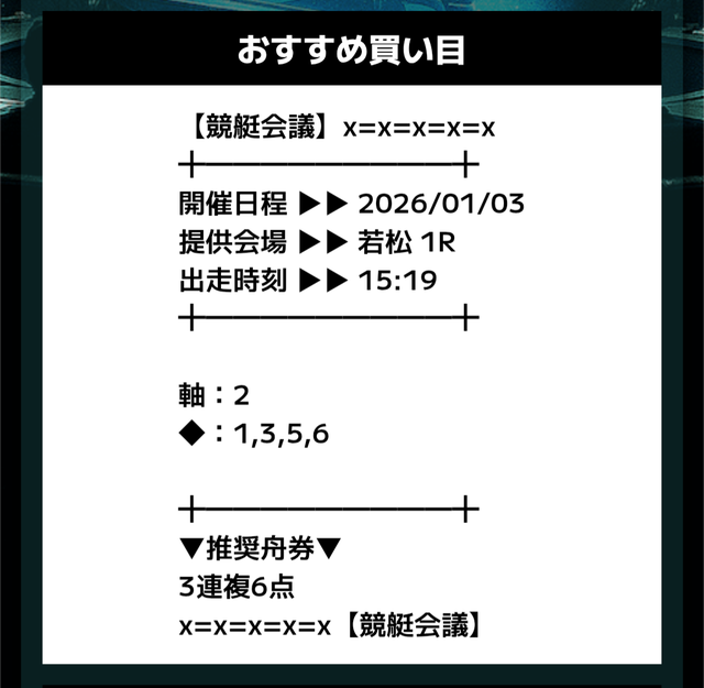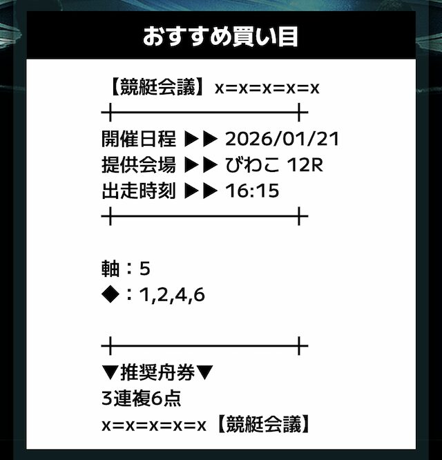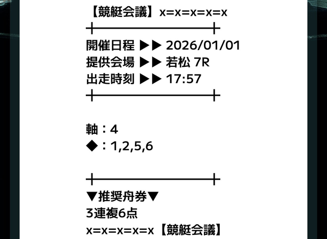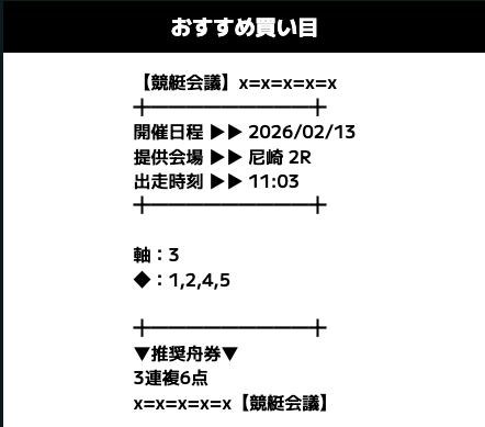 分析とは別で、競艇会議が最も稼いだ無料予想をご紹介しておきます。