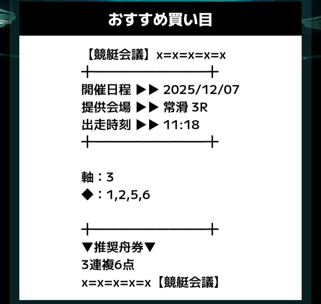 参加したのは、2025年11月26日常滑9Rの予想です。