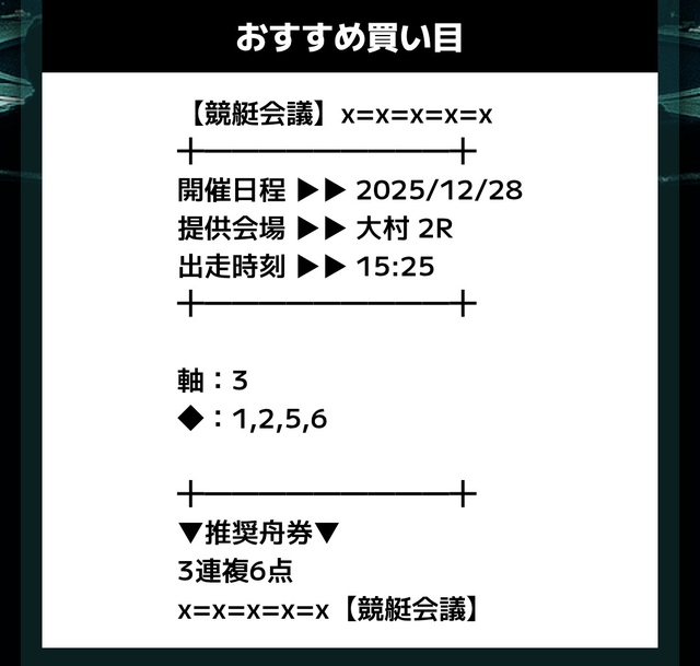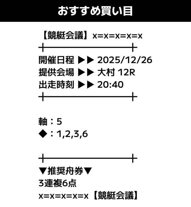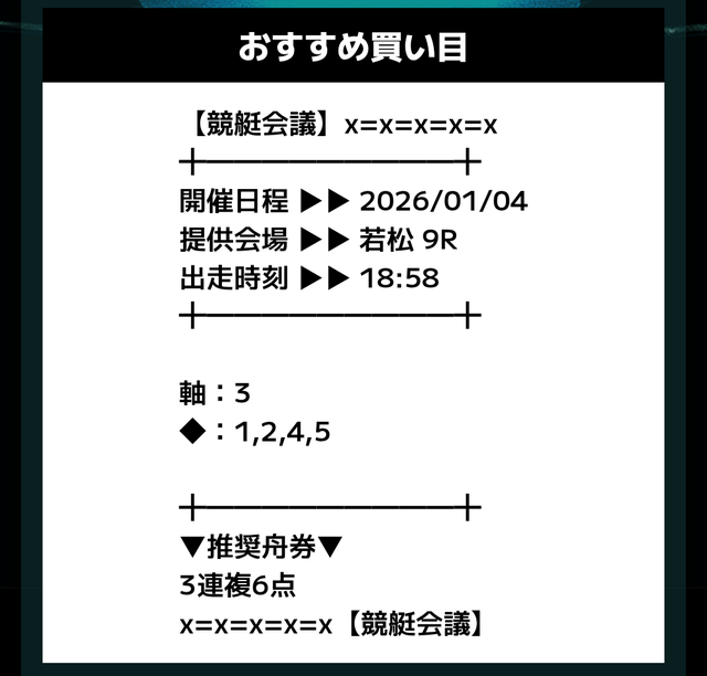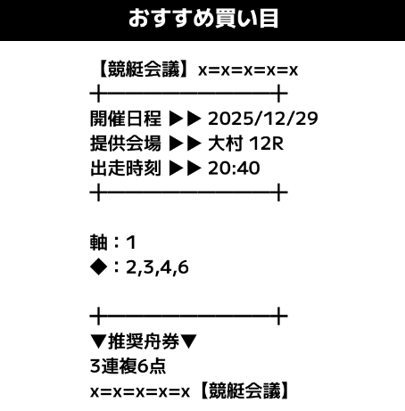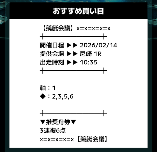 ただ、競艇会議の分析を行うため、公開された予想通りに購入してみます。