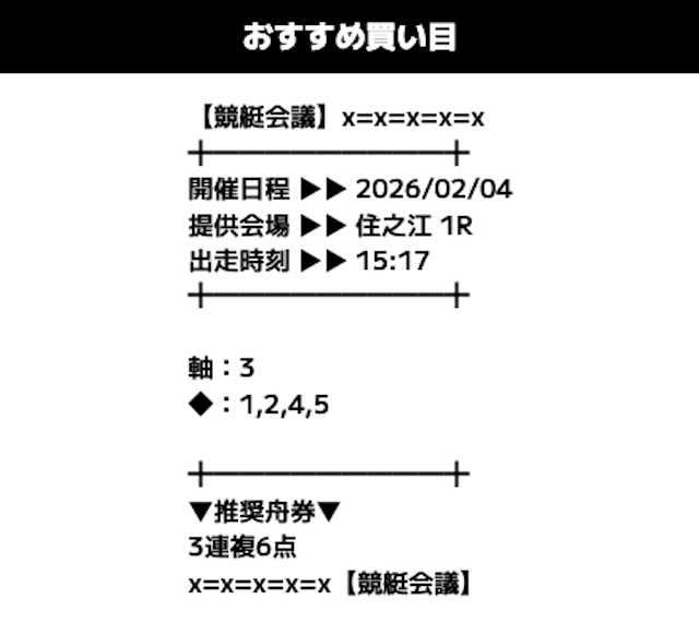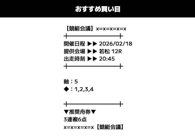 | 狙い方 | 堅実 | バランス | 穴狙い | 堅実 | 穴狙い | 堅実 | バランス | 穴狙い | 穴狙い | 穴狙い | 穴狙い | バランス | 穴狙い | 穴狙い |
