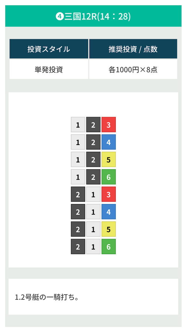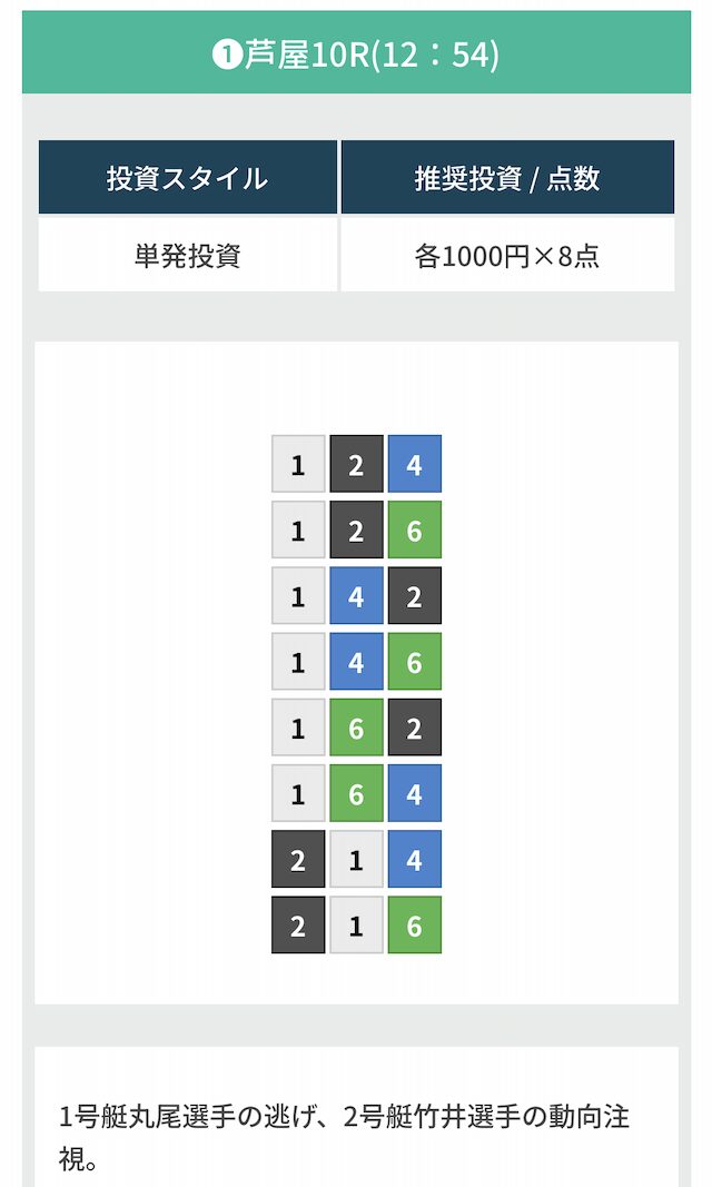 では、競艇ギャラクシーが出した予想を見ていきます。