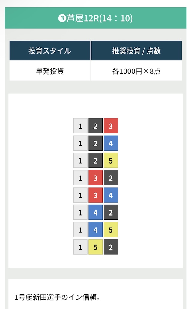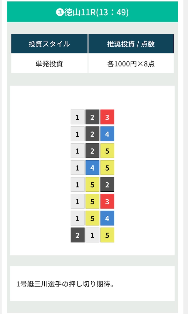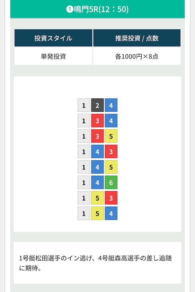 1・5号艇を軸にしていることから、この2選手は堅いと踏んでいるのでしょう。