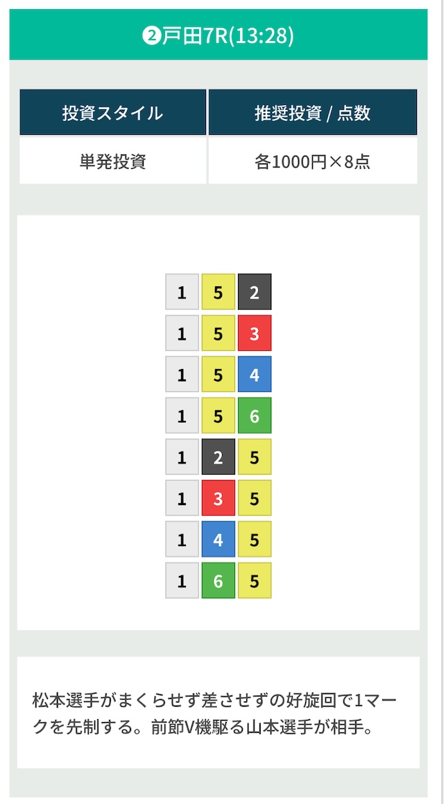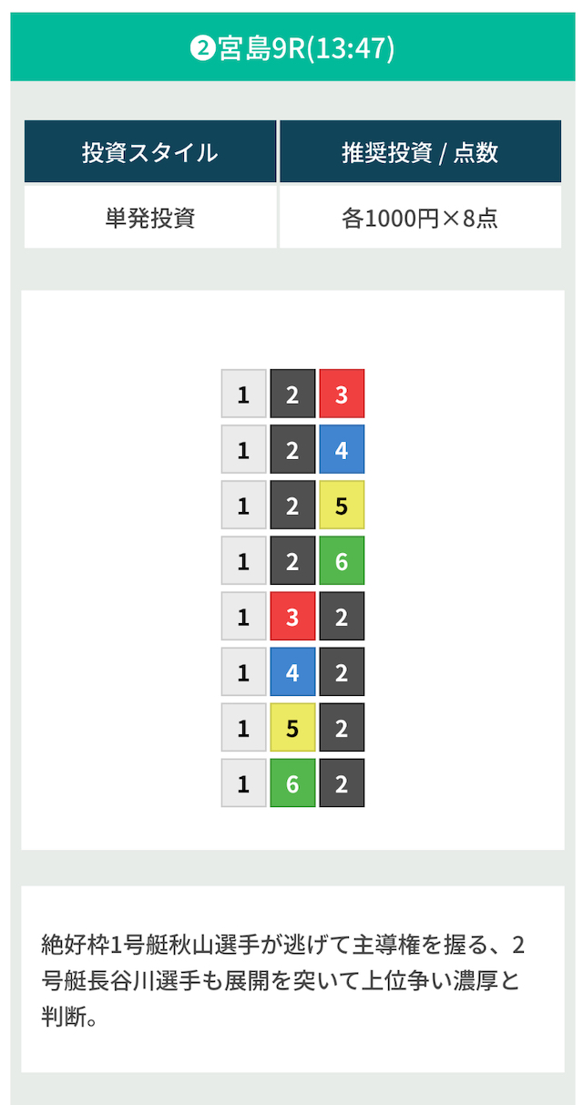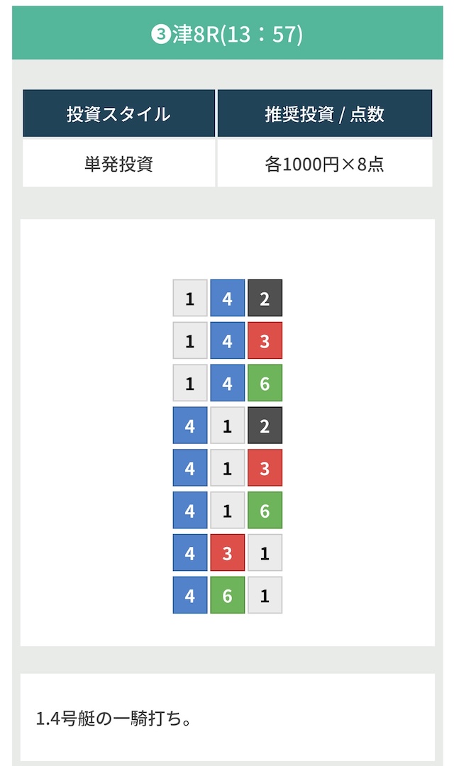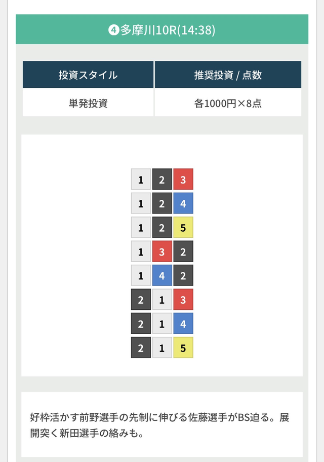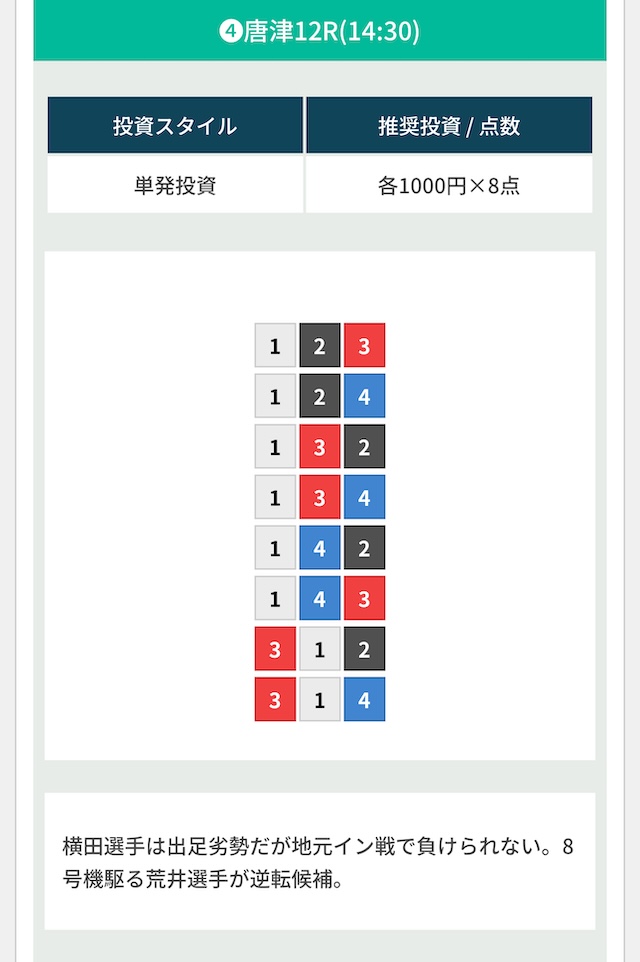 無料予想に3〜4回参加すれば購入できる有料情報なので積極的に参加していきましょう。