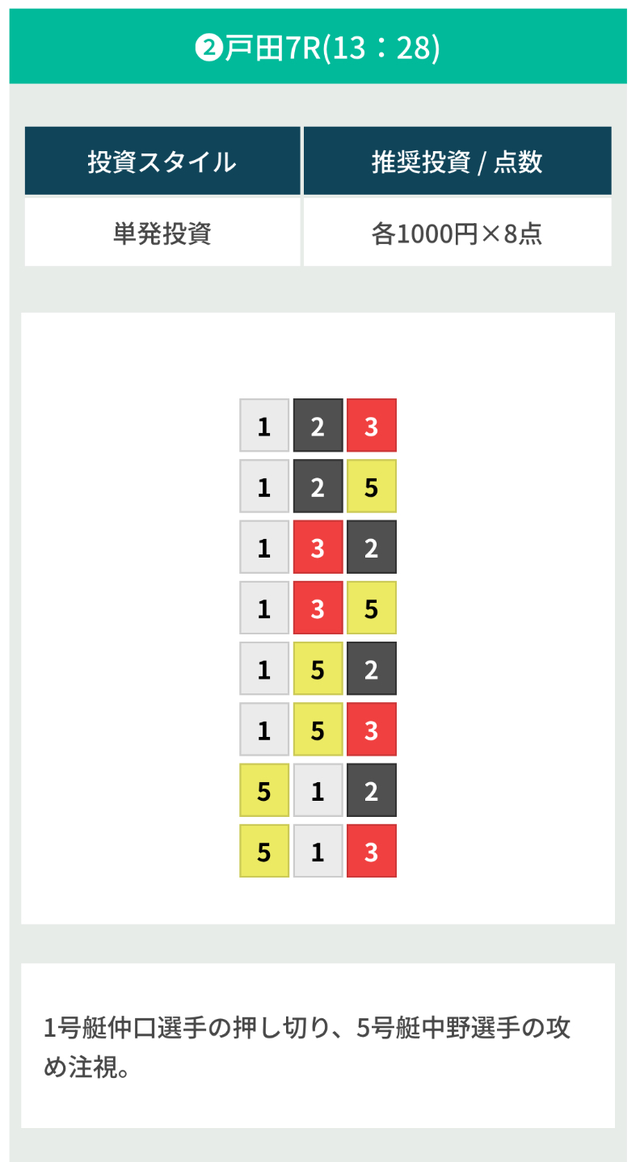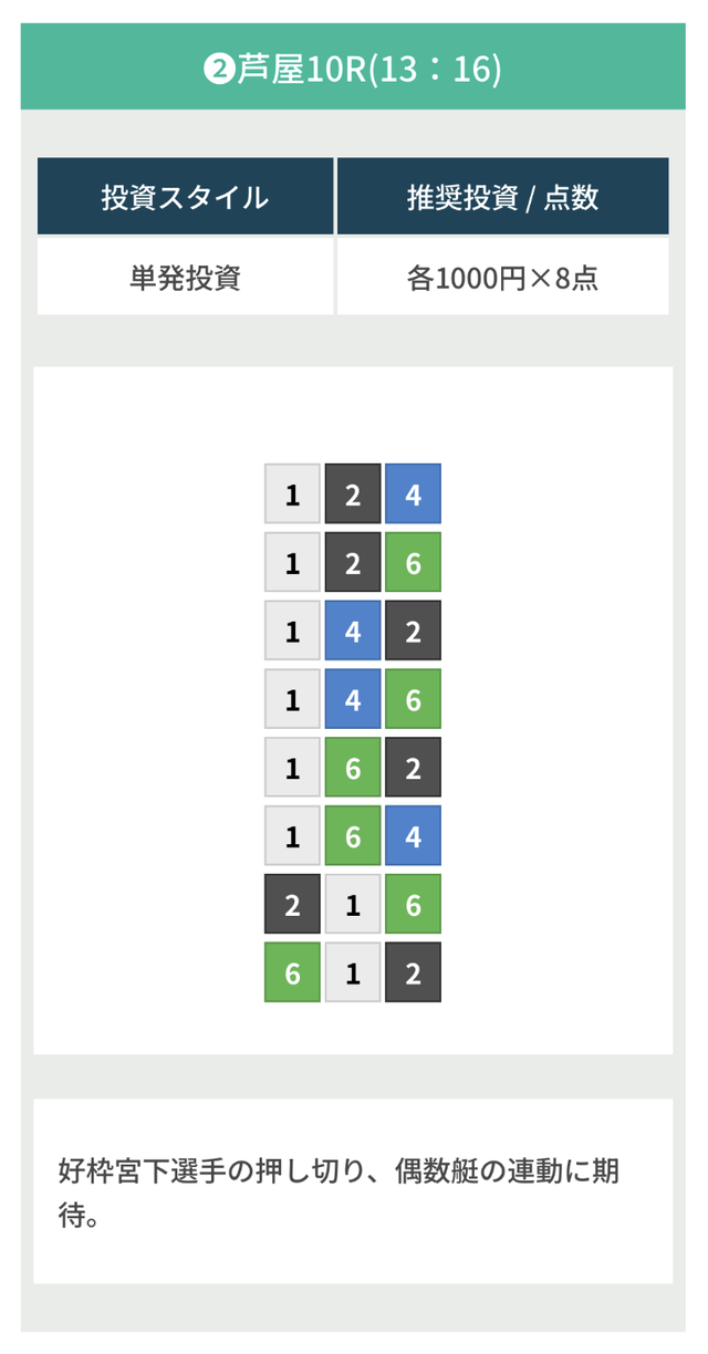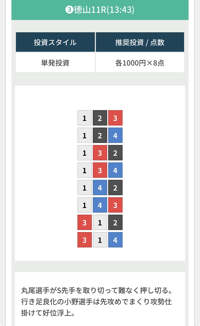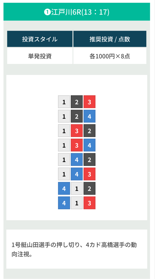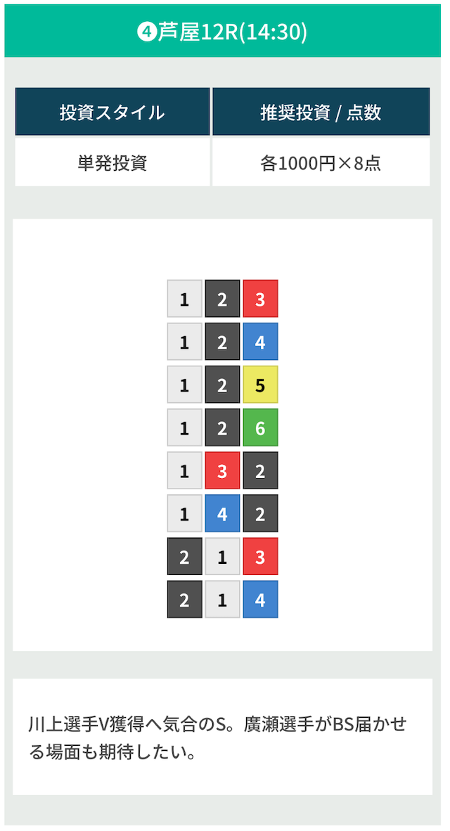無料予想に3〜4回参加すれば購入できる有料情報なので積極的に参加していきましょう。