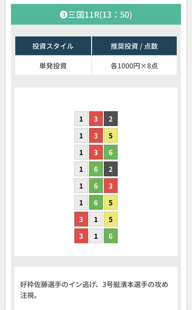 | 11月16日 | 三国9R | 三連単 | 8点 | 32,900円 |