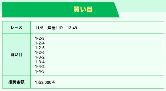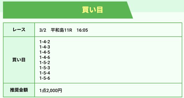 ただし、注目すべきは2号艇を頭にした買い目を1点だけ組み込んでいることです。