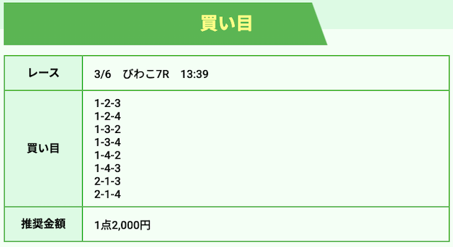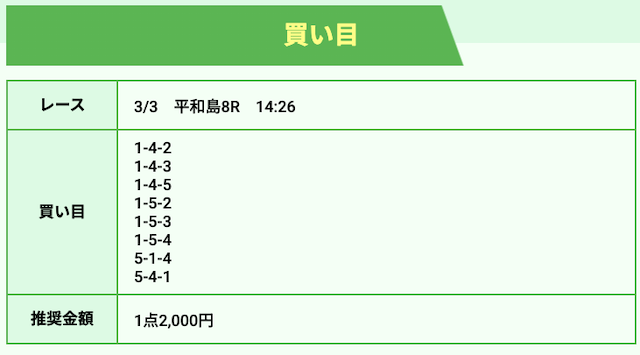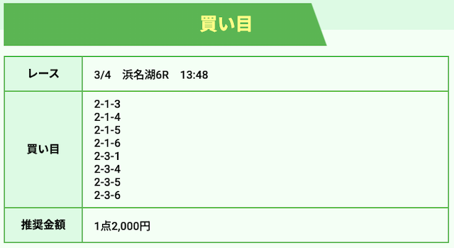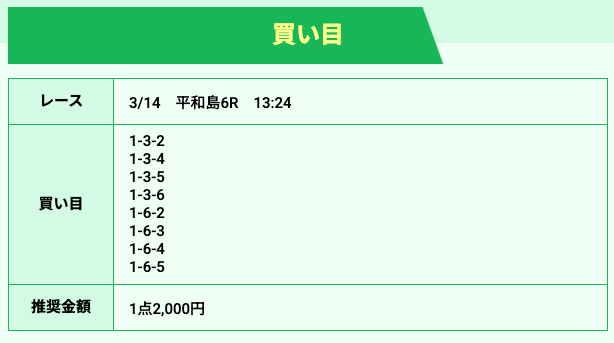 競艇ホットラインの狙い目は以下の通りです。