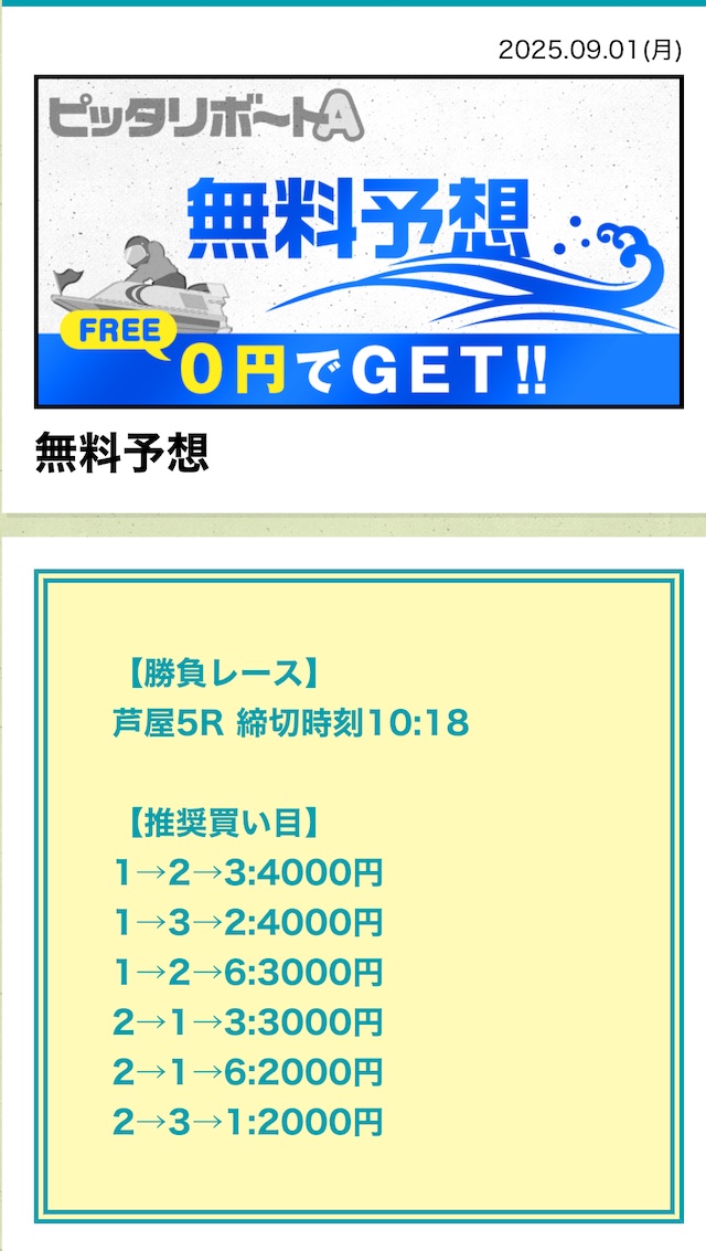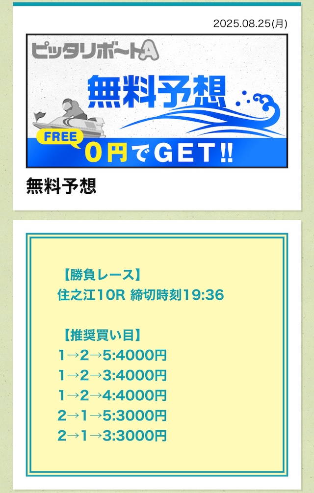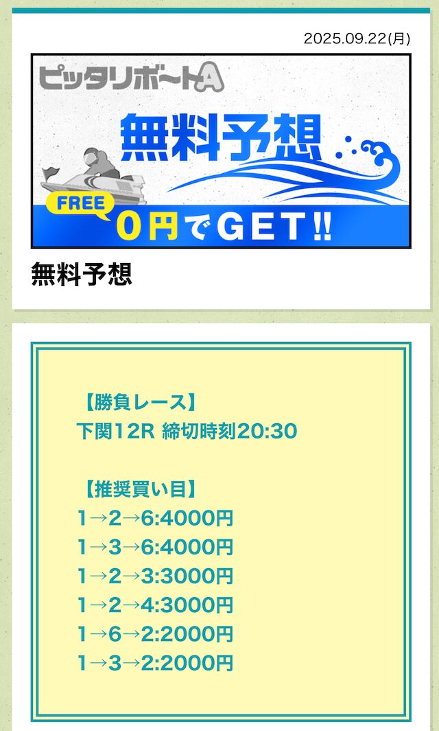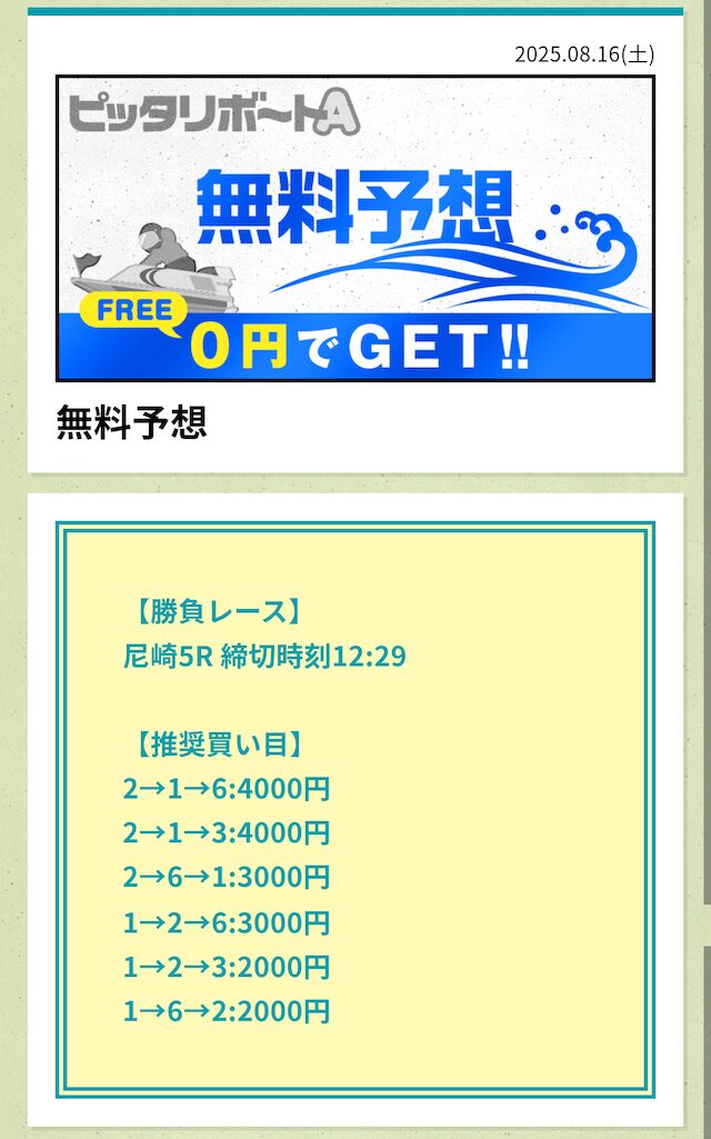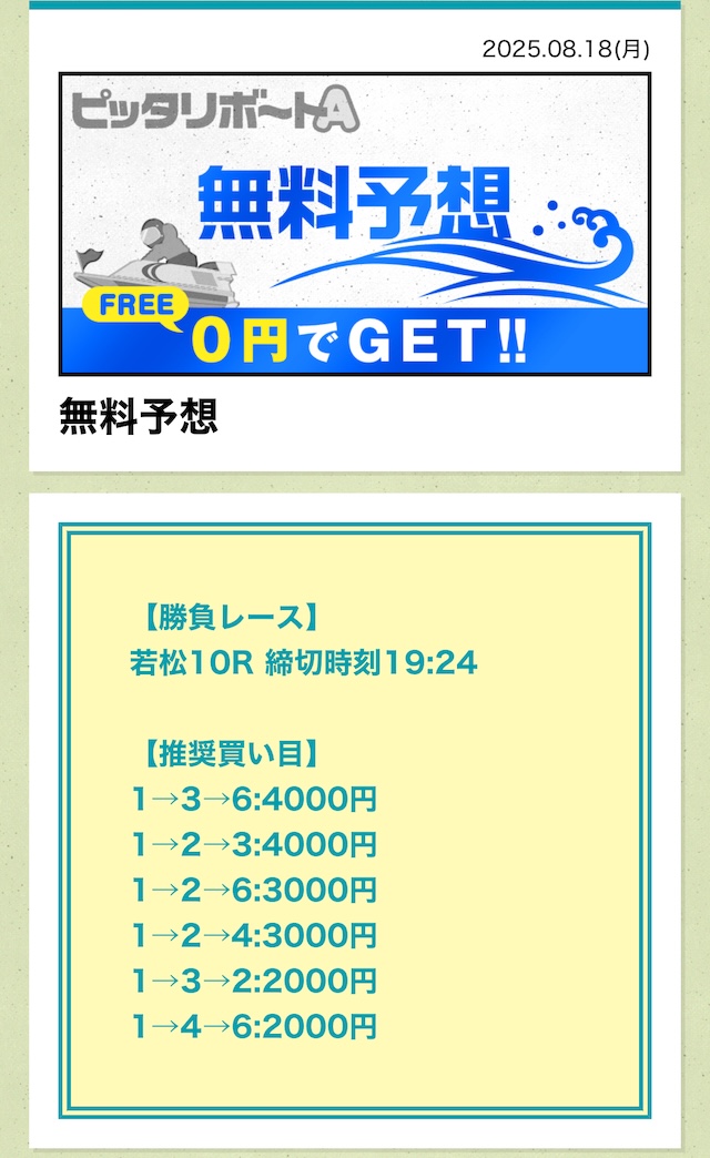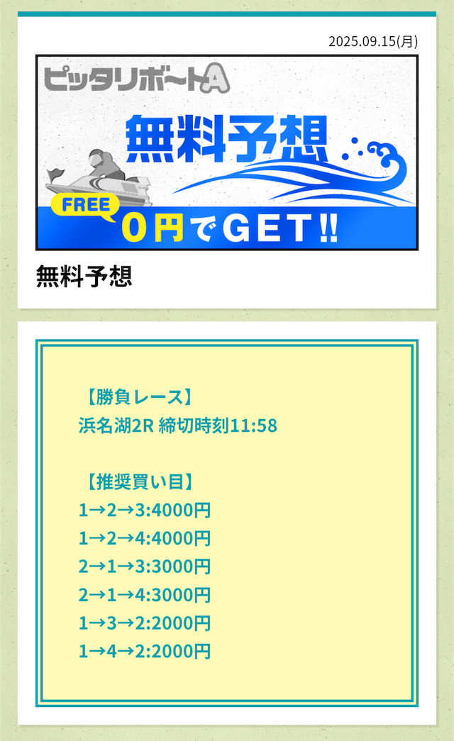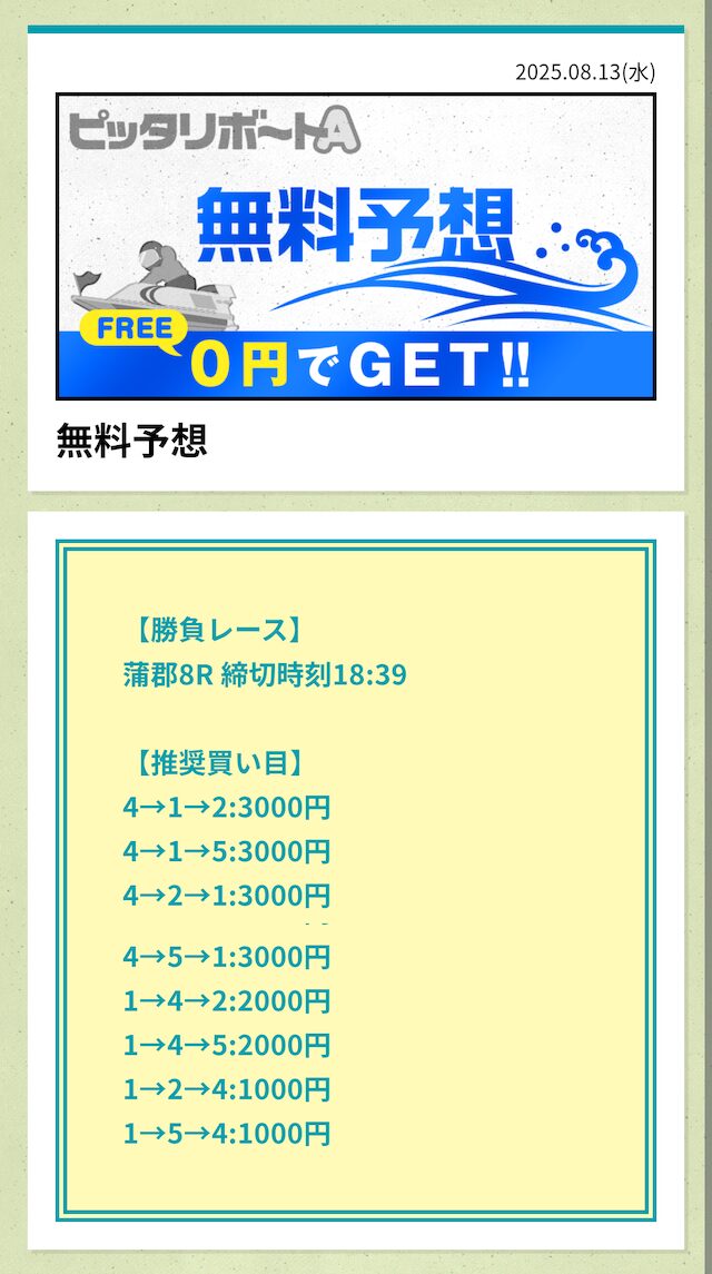 ピッタリボートAが最も稼いだ無料予想を紹介
