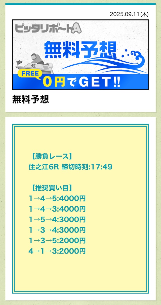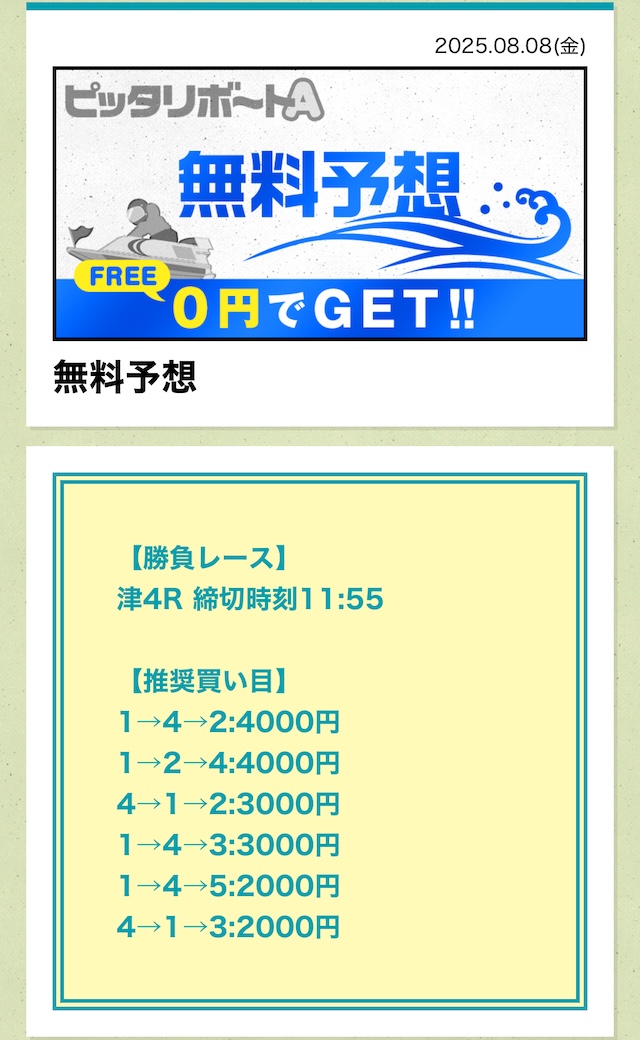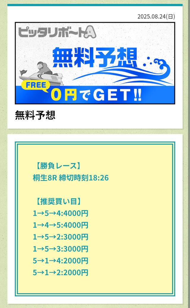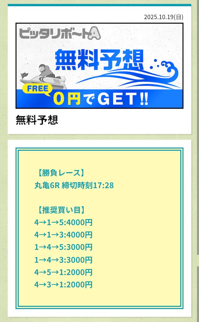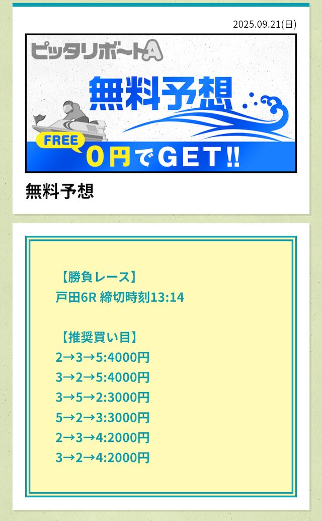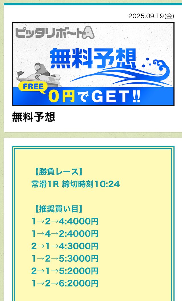 ピッタリボートAが最も稼いだ無料予想を紹介
