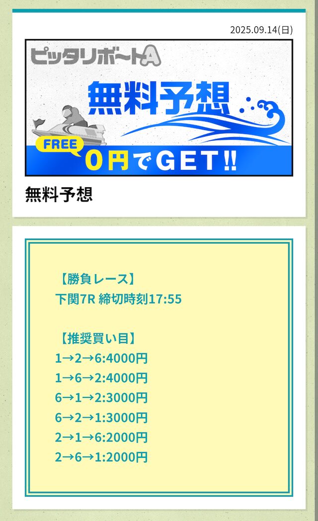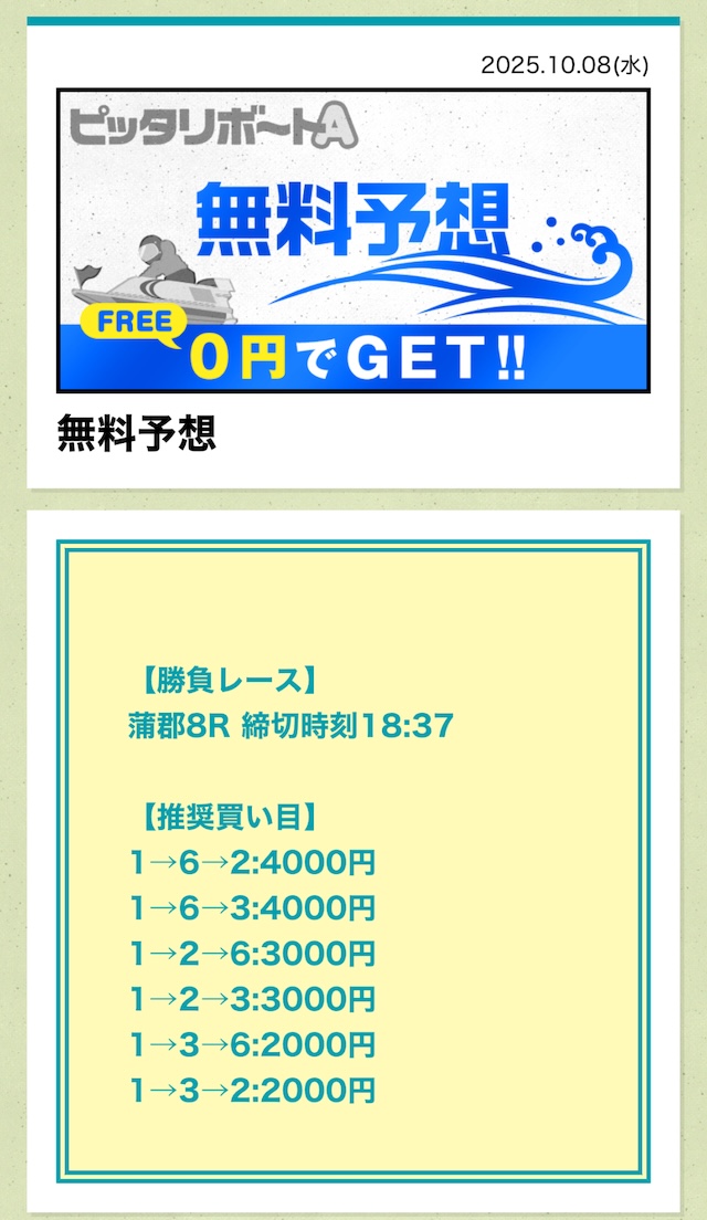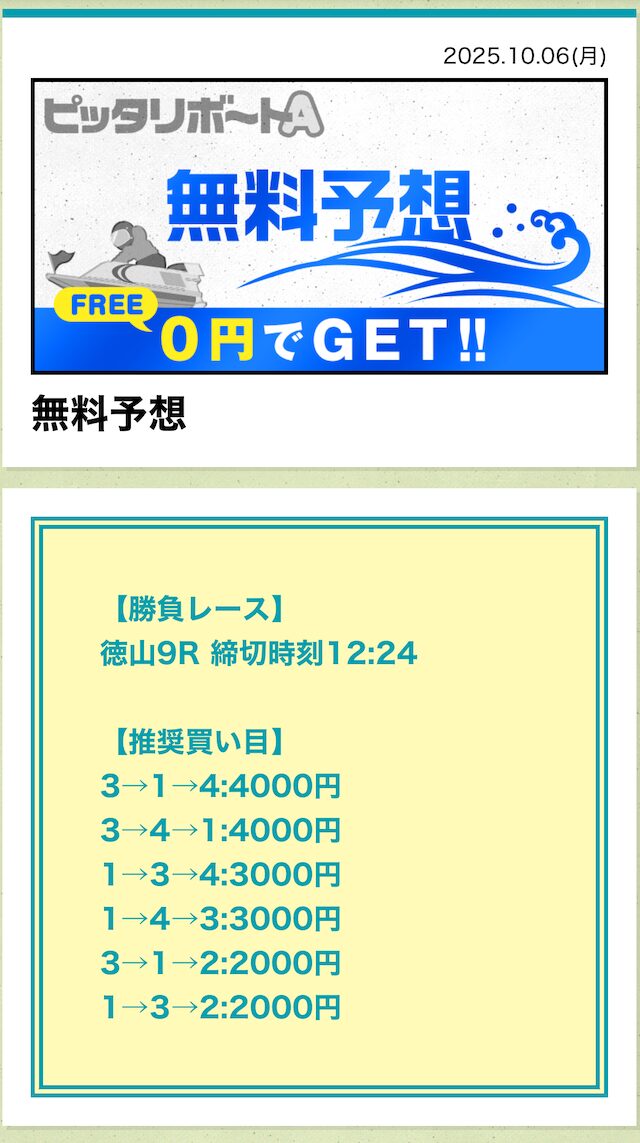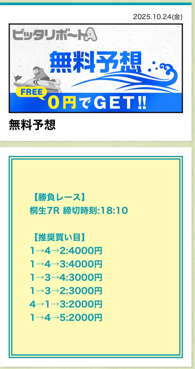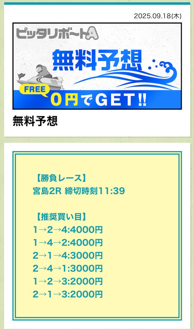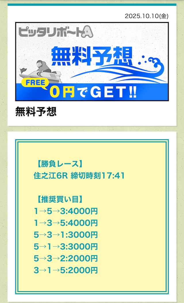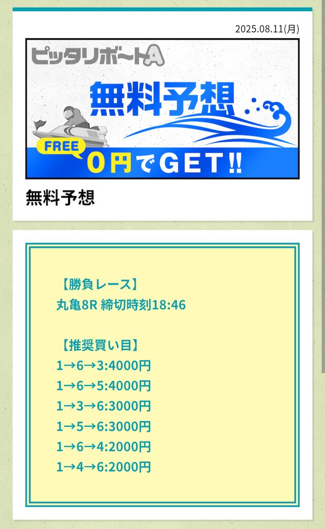 ピッタリボートAが最も稼いだ無料予想を紹介
