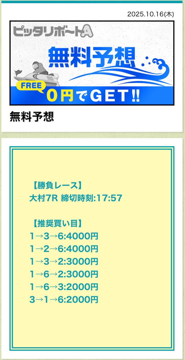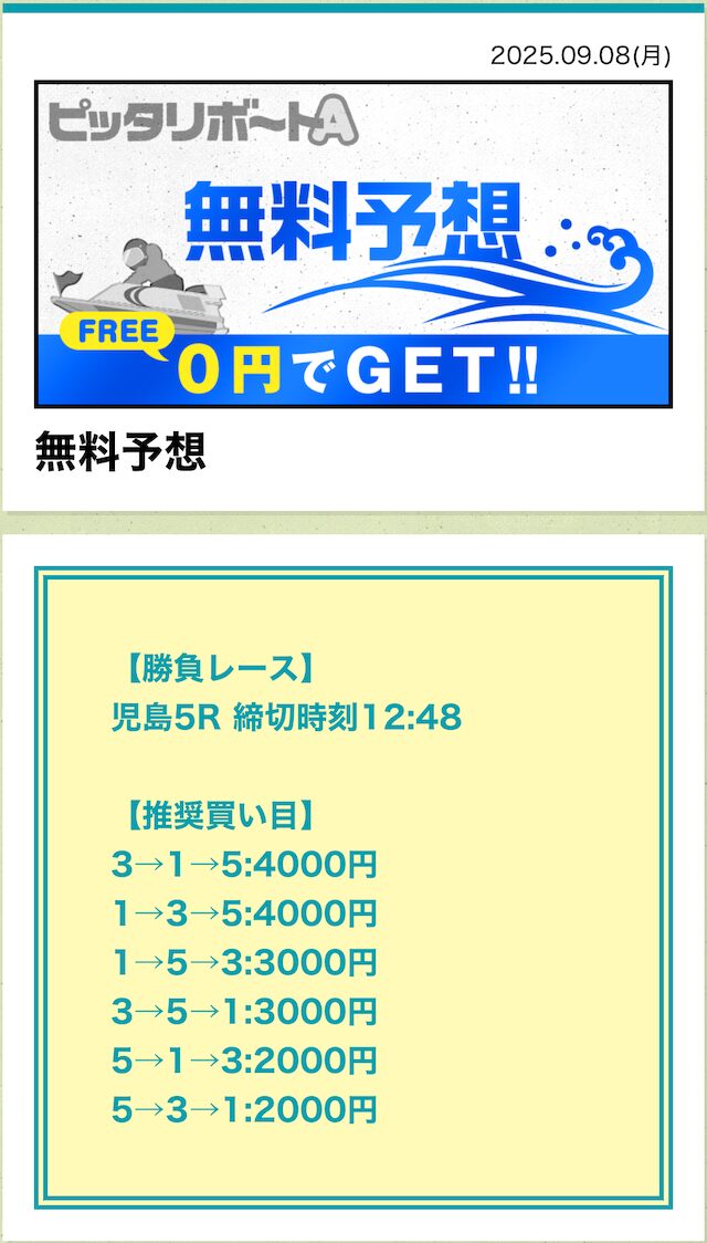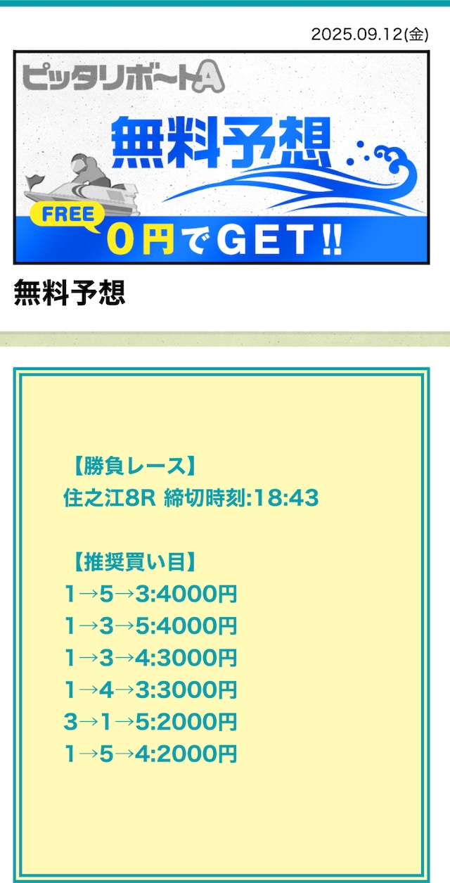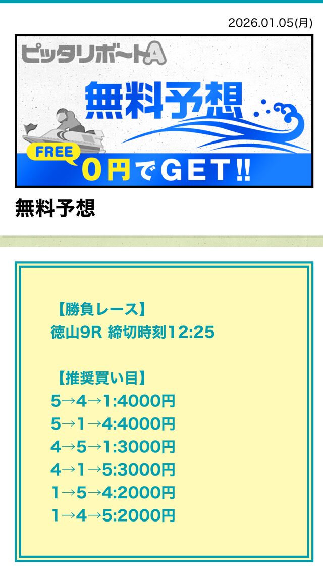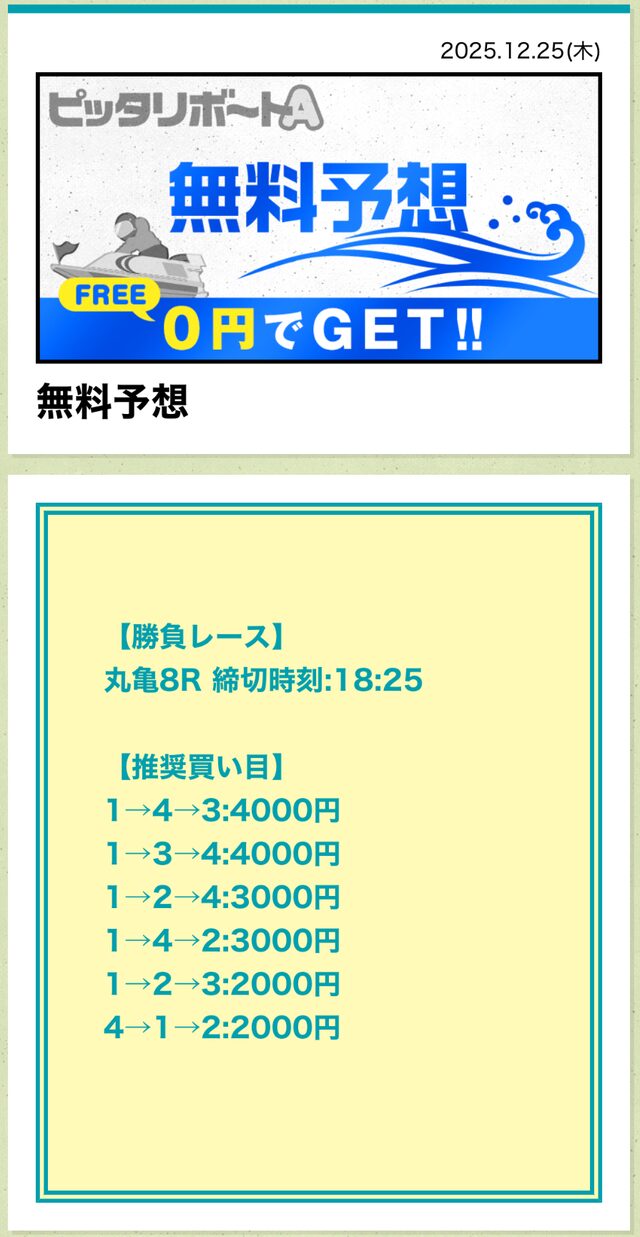 分析とは別で、ピッタリボートAが最も稼いだ無料予想をご紹介しておきます。