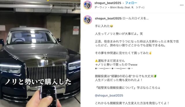 競艇将軍のインスタに載ってる車とか時計って本物?高級すぎて本物か怪しいわww