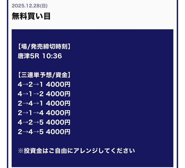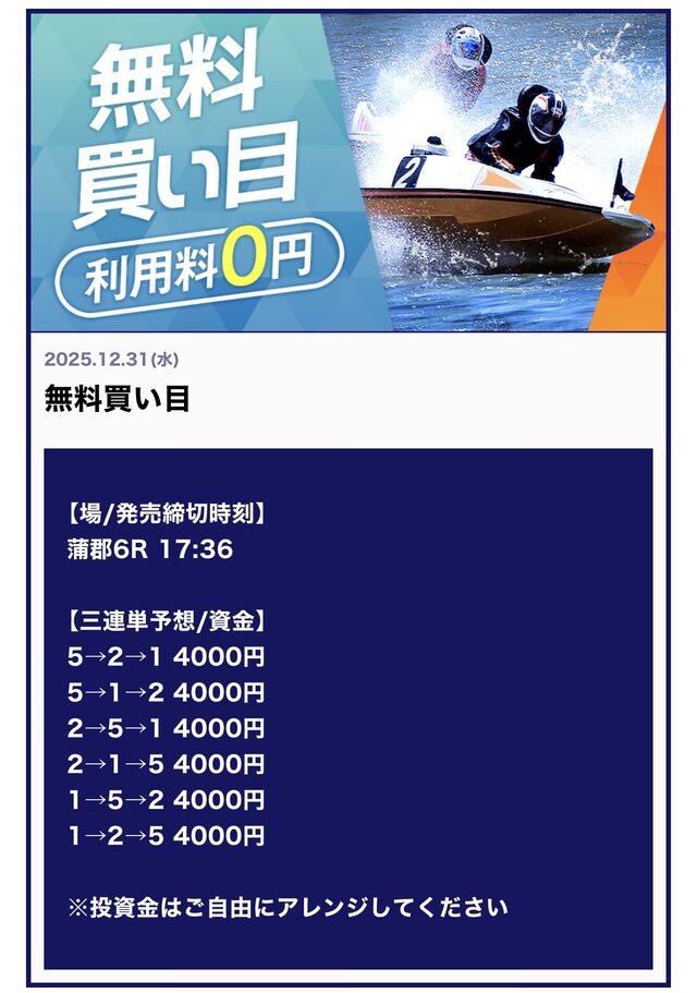 1回の無料予想でも、約3万円前後の利益を期待できるケースが多く、情報料を低リスクで賄える可能性があります。