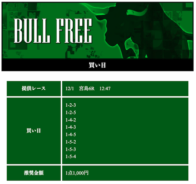 | 12月9日 | 三国12R | 三連単 | 6点 | 11,700円 |