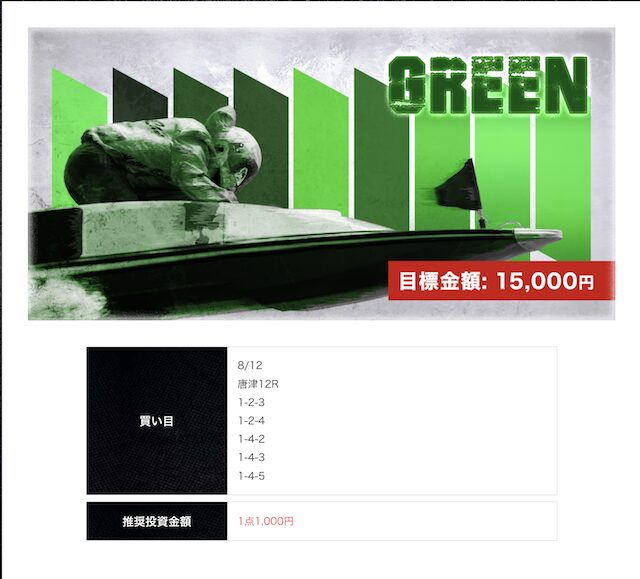| 8月12日 | 唐津12R | 三連単 | 5点 | 14,600円 |