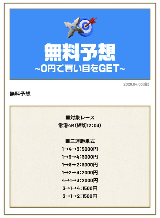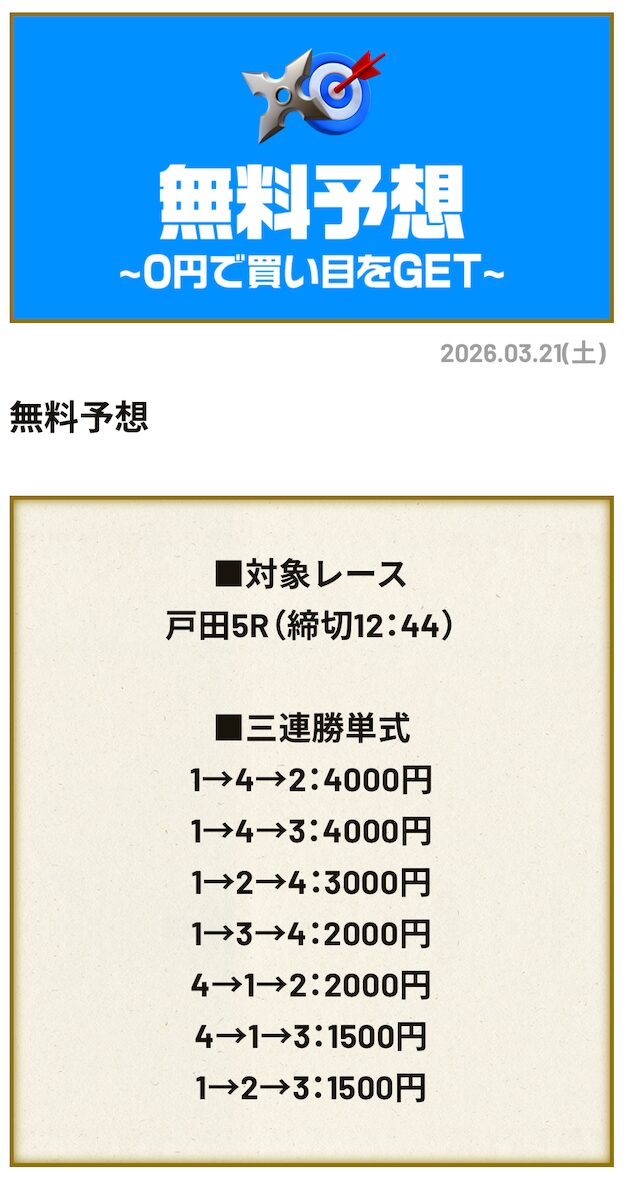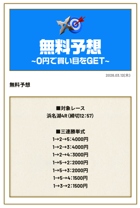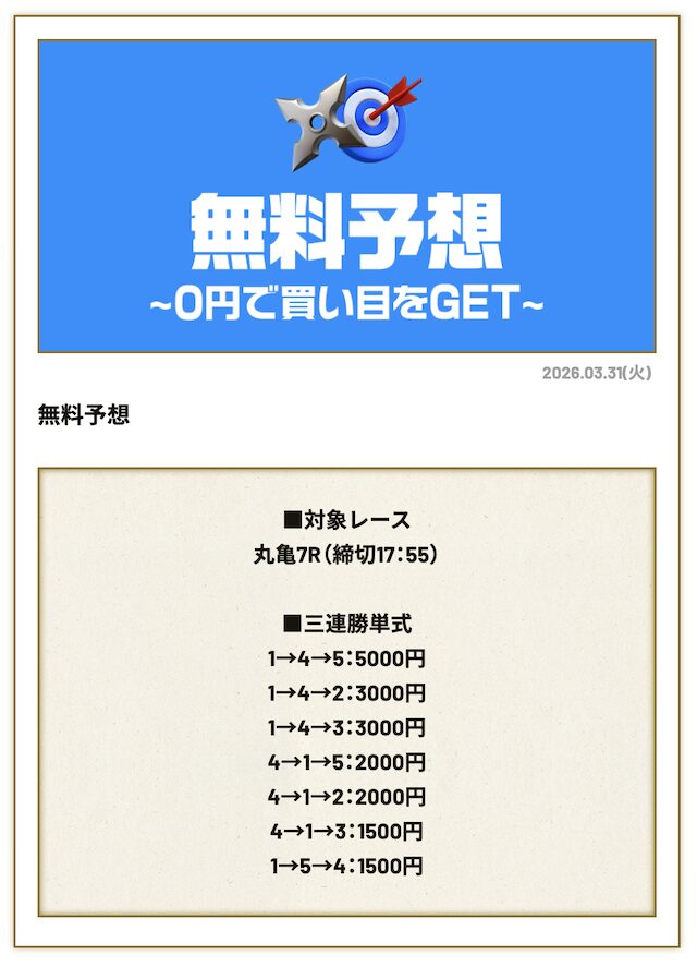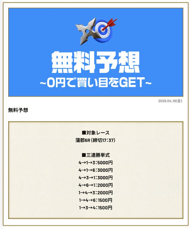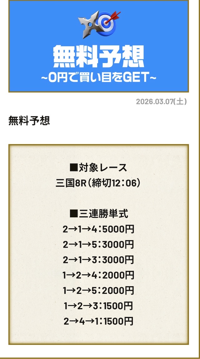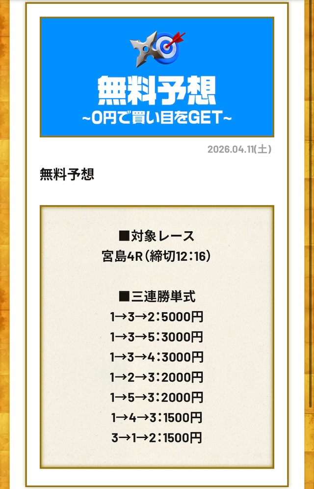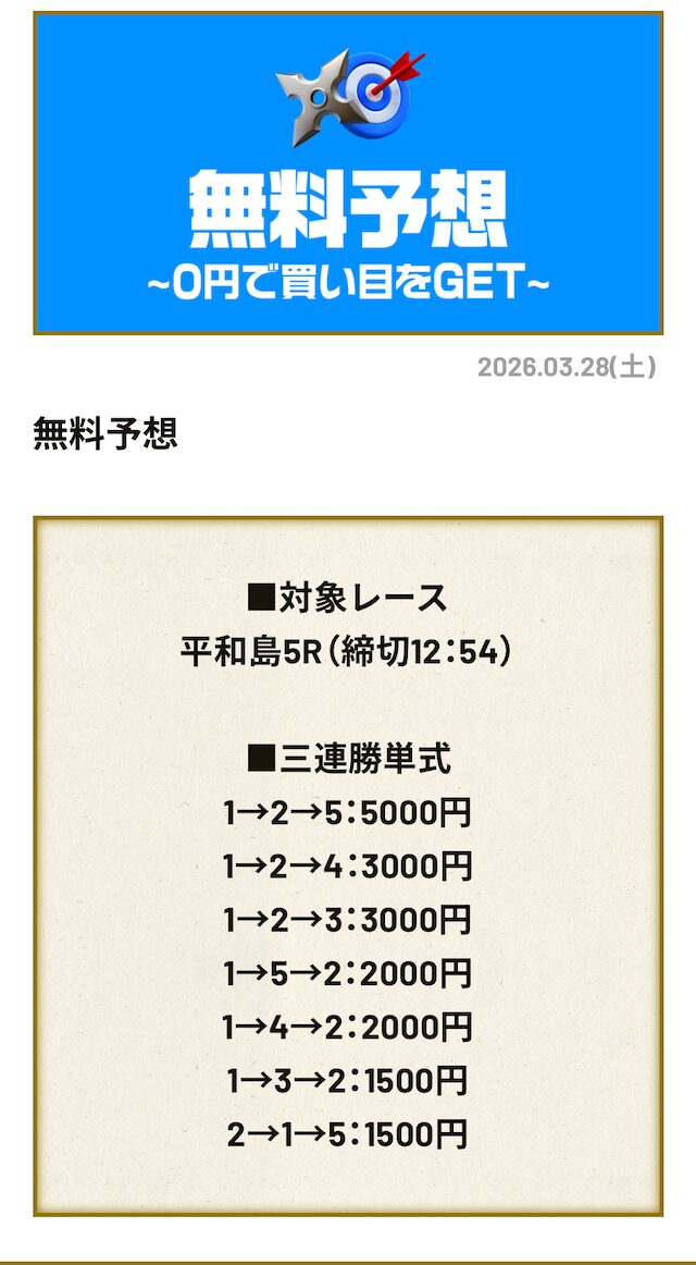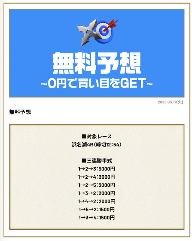 分析とは別で、競艇ニンジャが最も稼いだ無料予想をご紹介しておきます。