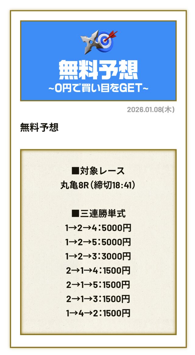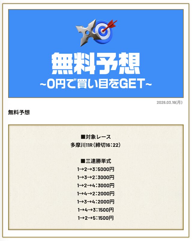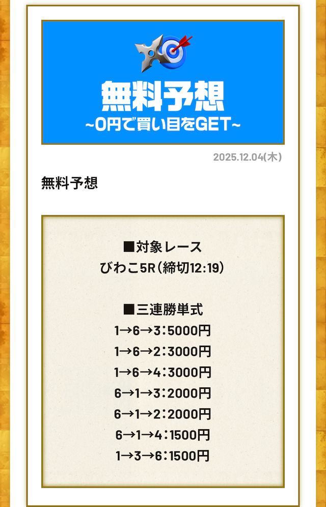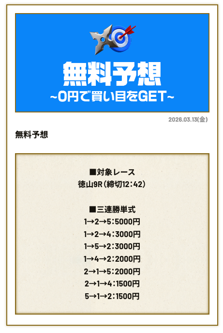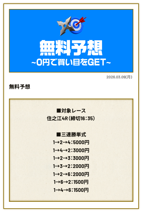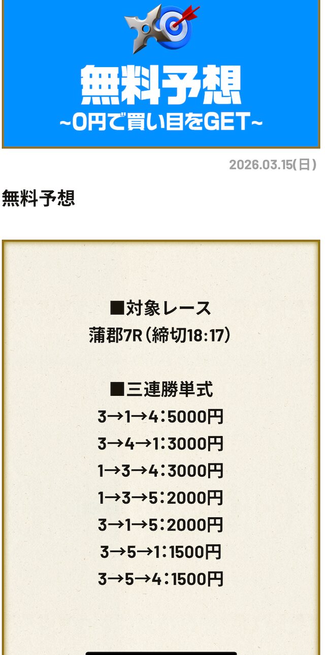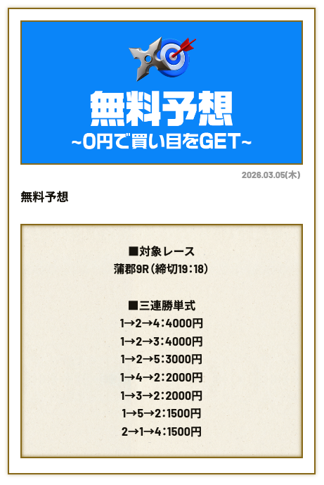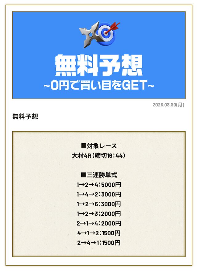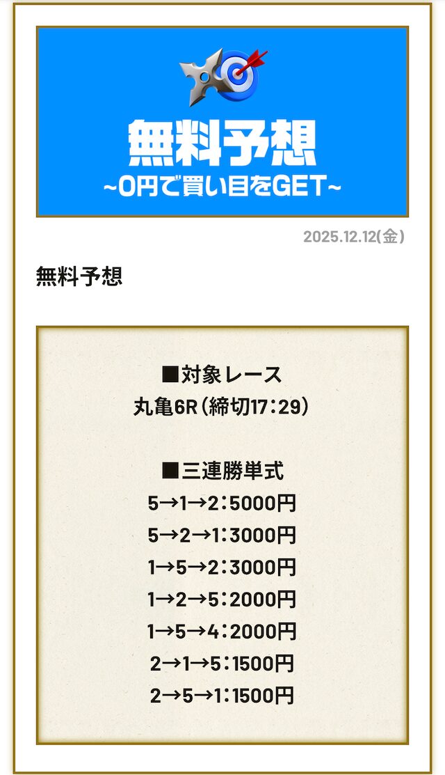 分析とは別で、競艇ニンジャが最も稼いだ無料予想をご紹介しておきます。