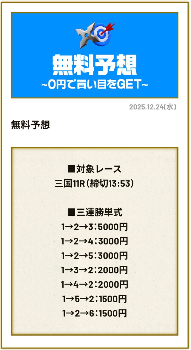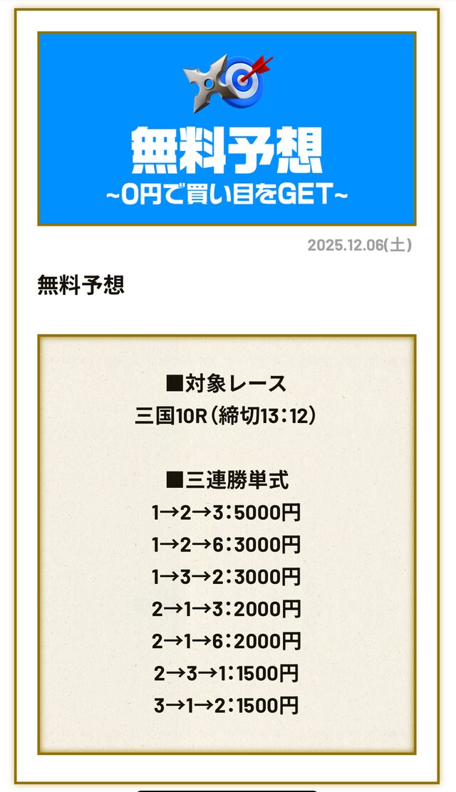 対象になったのは2025年10月12日三国4Rの予想です。