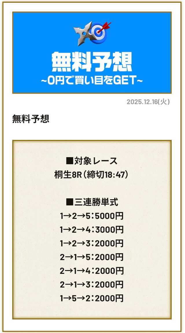 有料予想は情報にお金を払う対価として、大きく稼げる情報を提供してくれます。