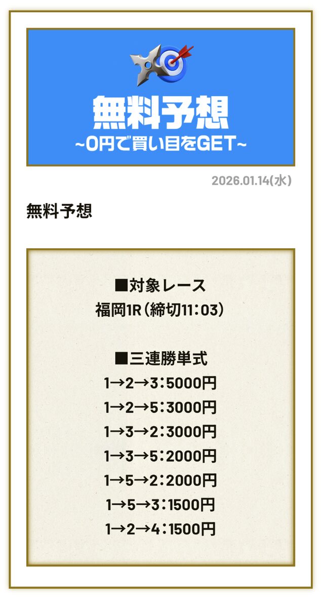 未だに負け無しを継続しているので、予想が公開された際は参加して問題ありません。