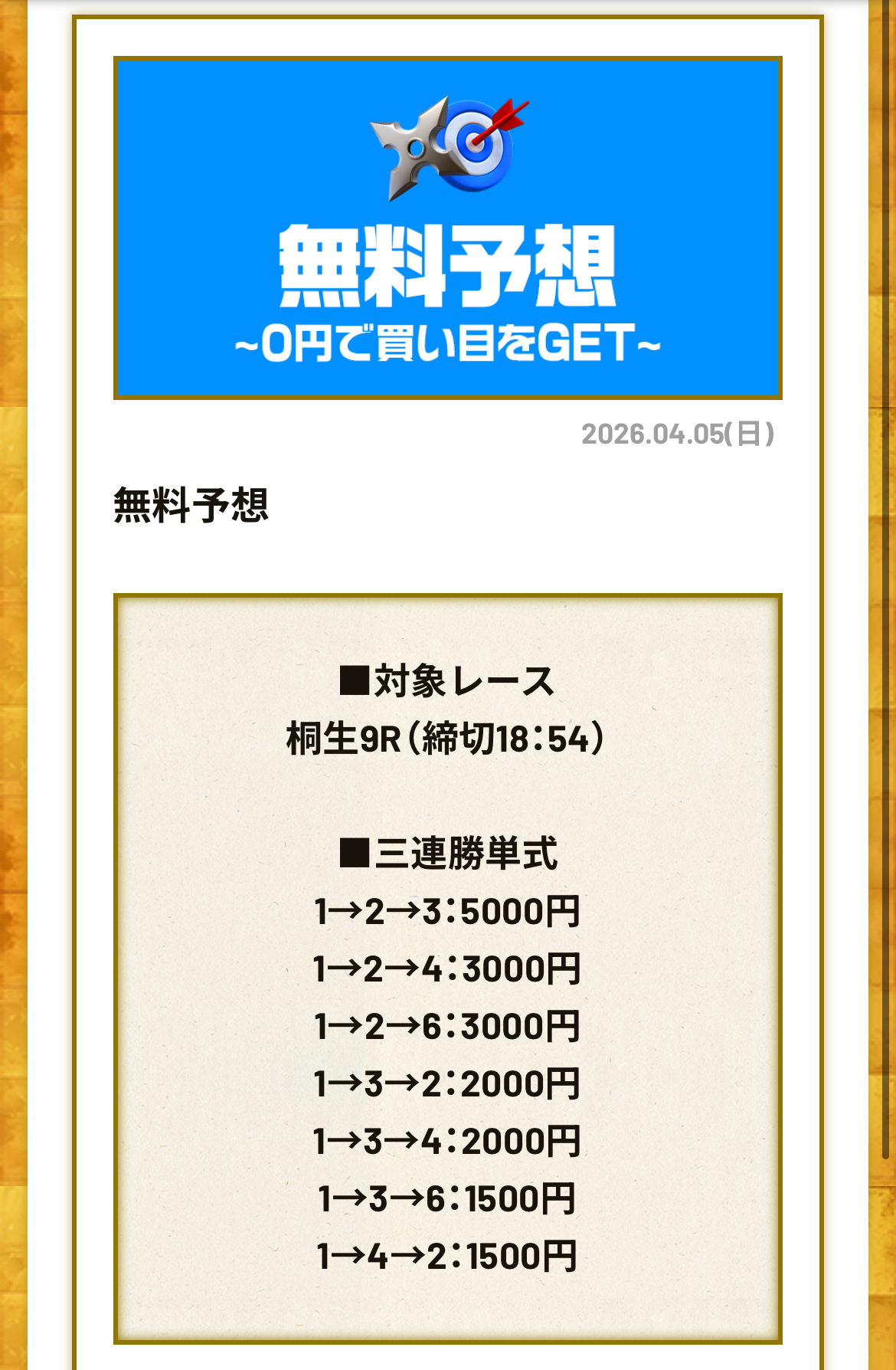 ただ、稼げない情報にお金を払うのはバカらしいと思うので、購入した予想の結果をまとめてみました。
