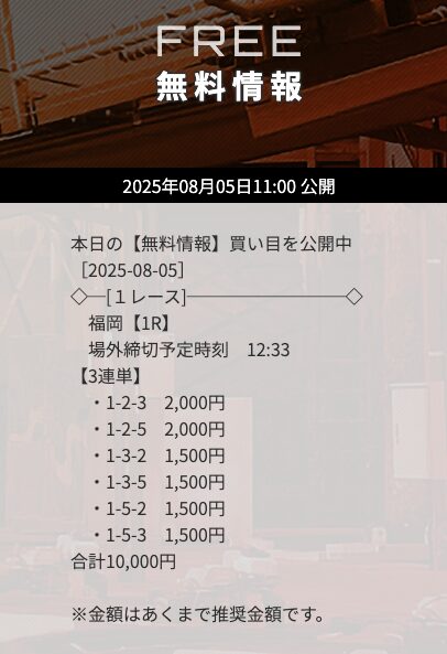 効率的に稼ぐことが目的であれば有料予想に参加するべきと言えますが、中には情報料がネックになる方もいるでしょう。