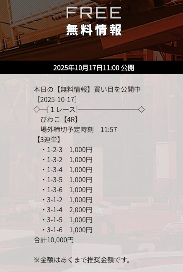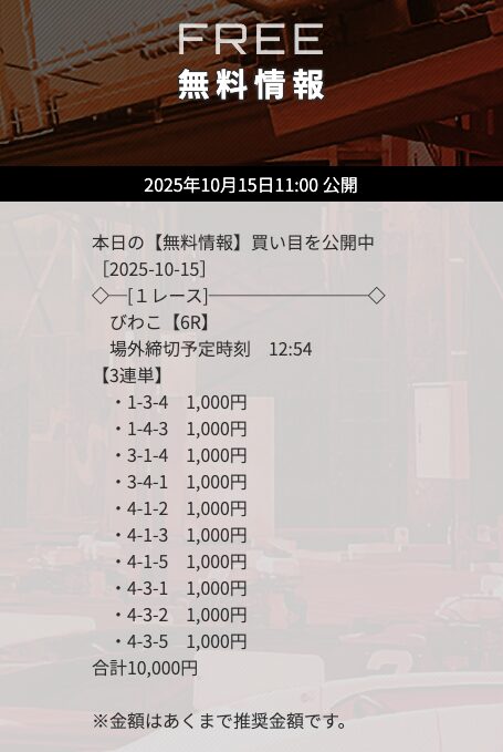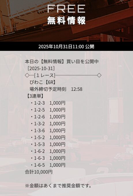 その場合は、まずは無料予想に参加して、貯まった軍資金を元手に有料予想を購入してみてください。